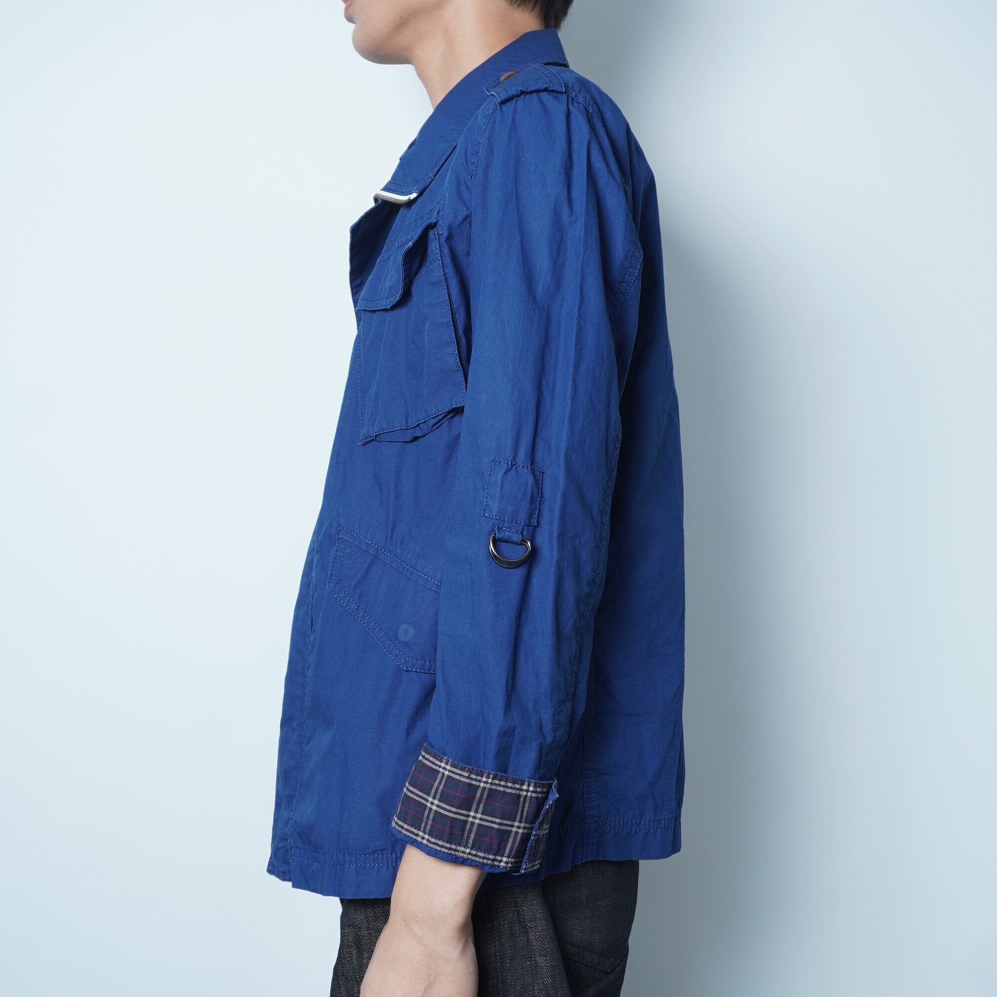 【BURBERRY】バーバリー BLACK LABEL ノヴァチェック切替ジップアップコットンジャケット blue