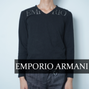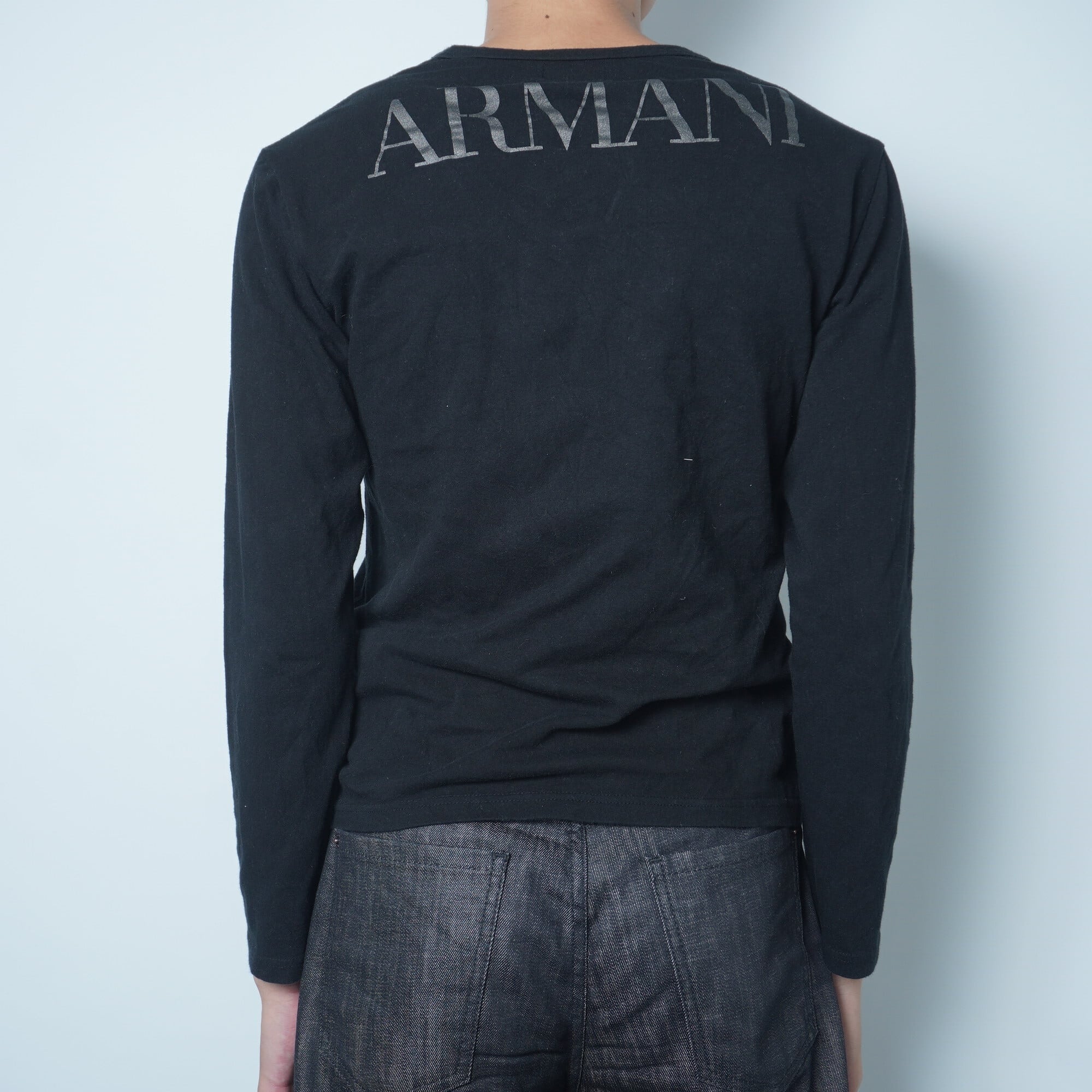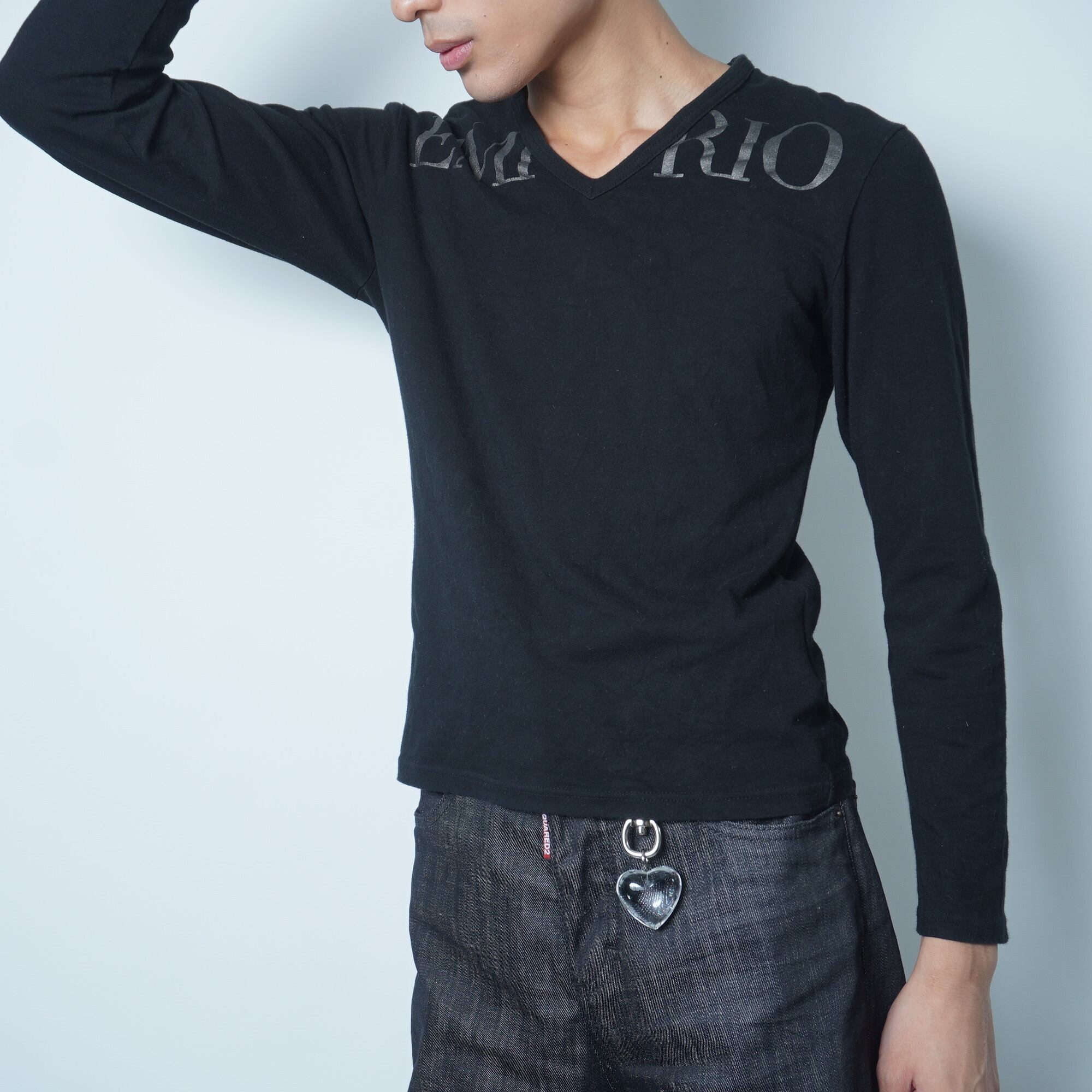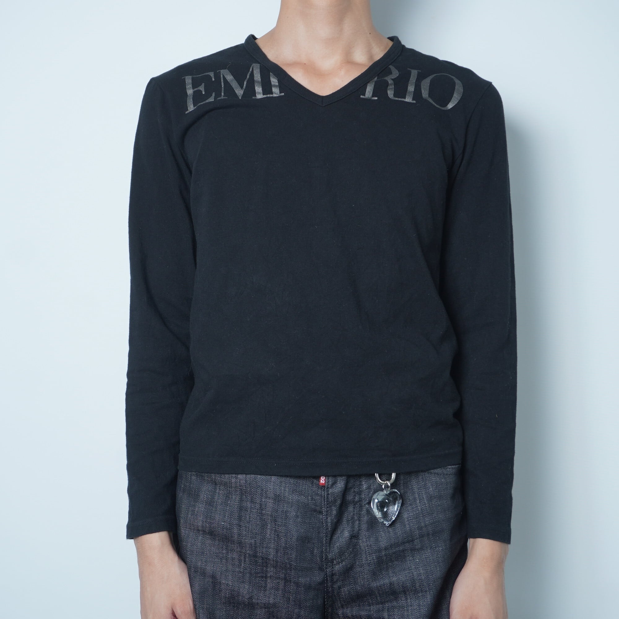 【EMPORIO ARMANI】エンポリオアルマーニ Y2K ラメロゴプリントVネックLSカットソー black