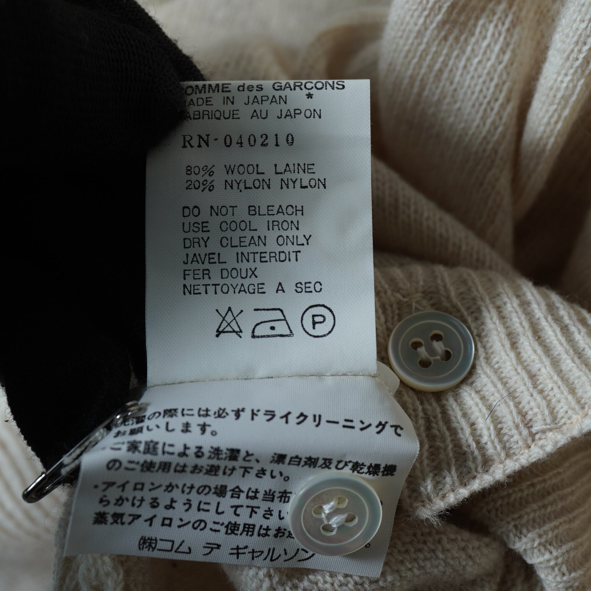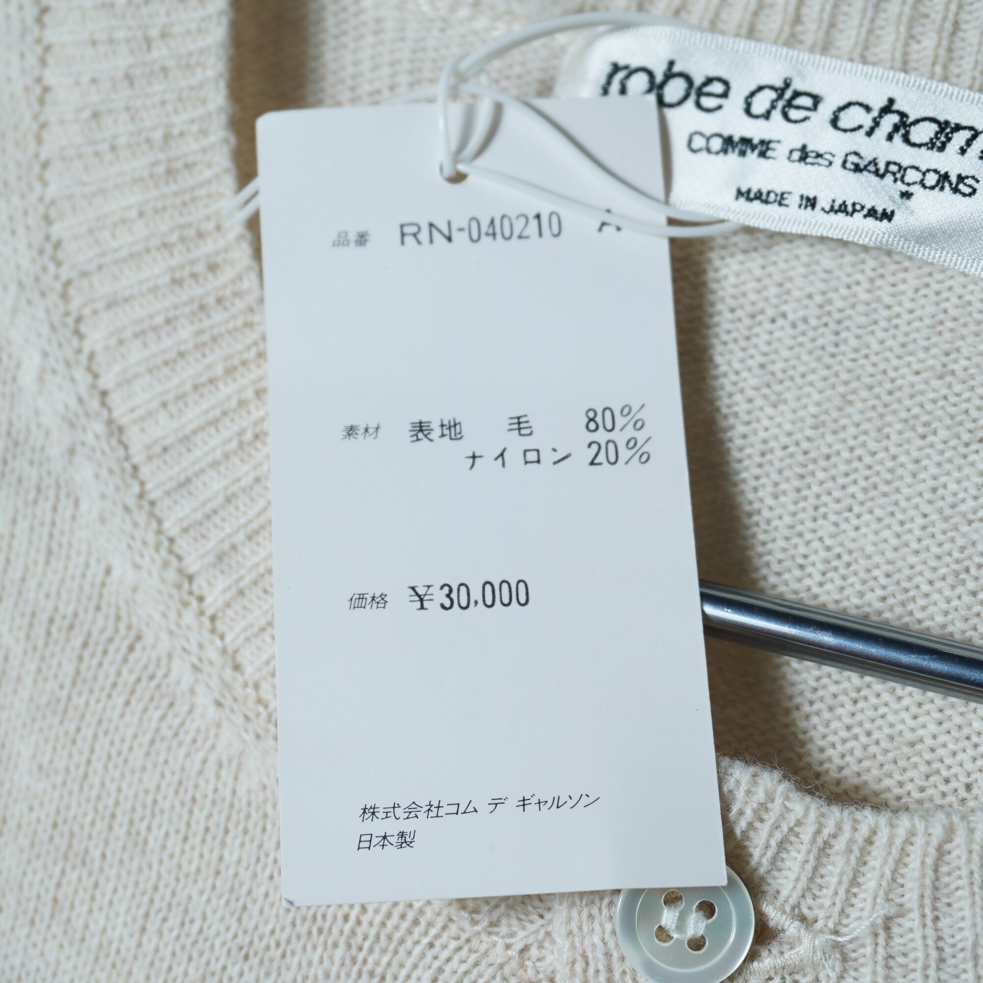 【COMME des GARÇONS】コムデギャルソン "94年製" 極美品タグ付 ウールカーディガン beige