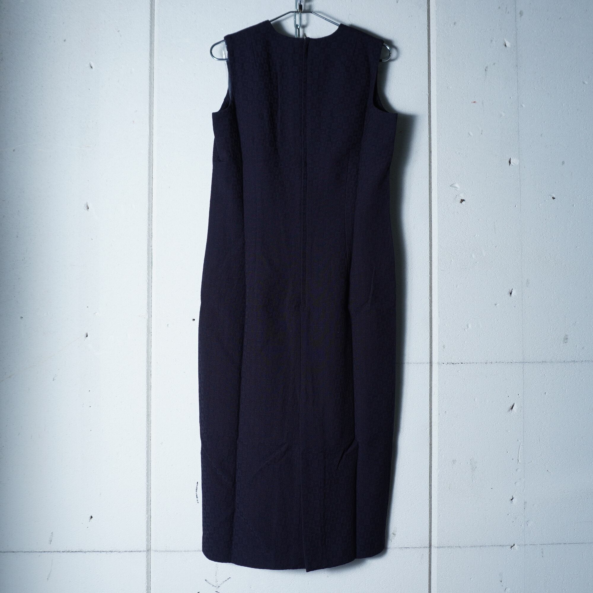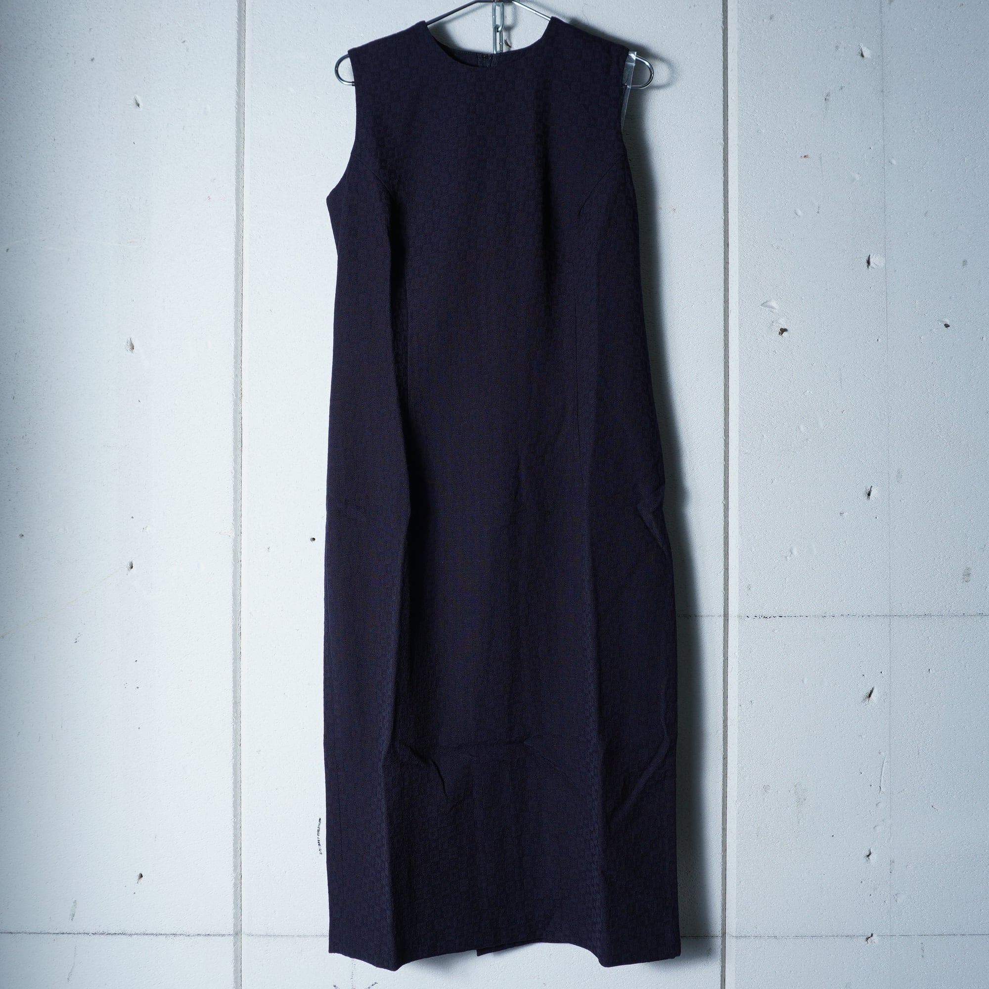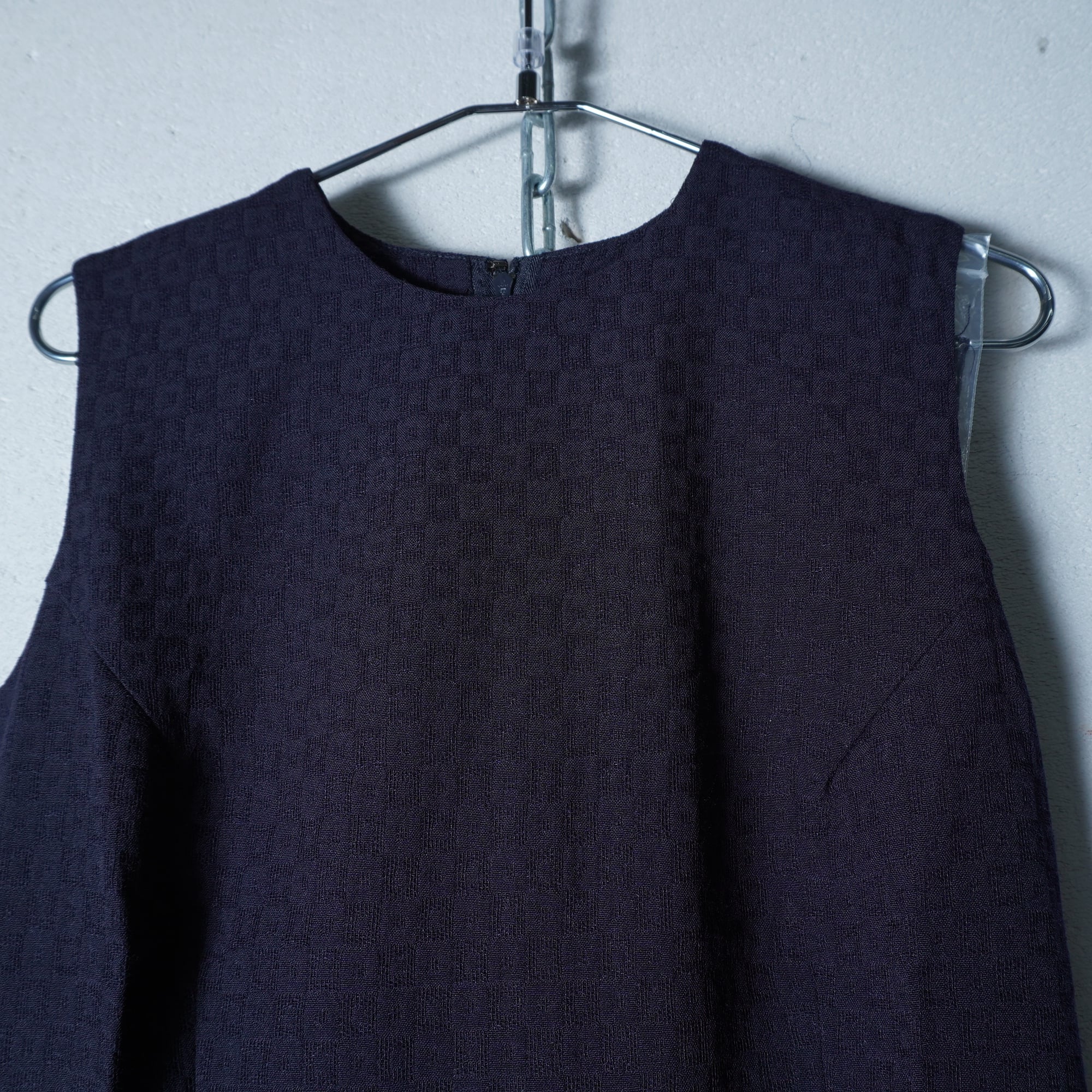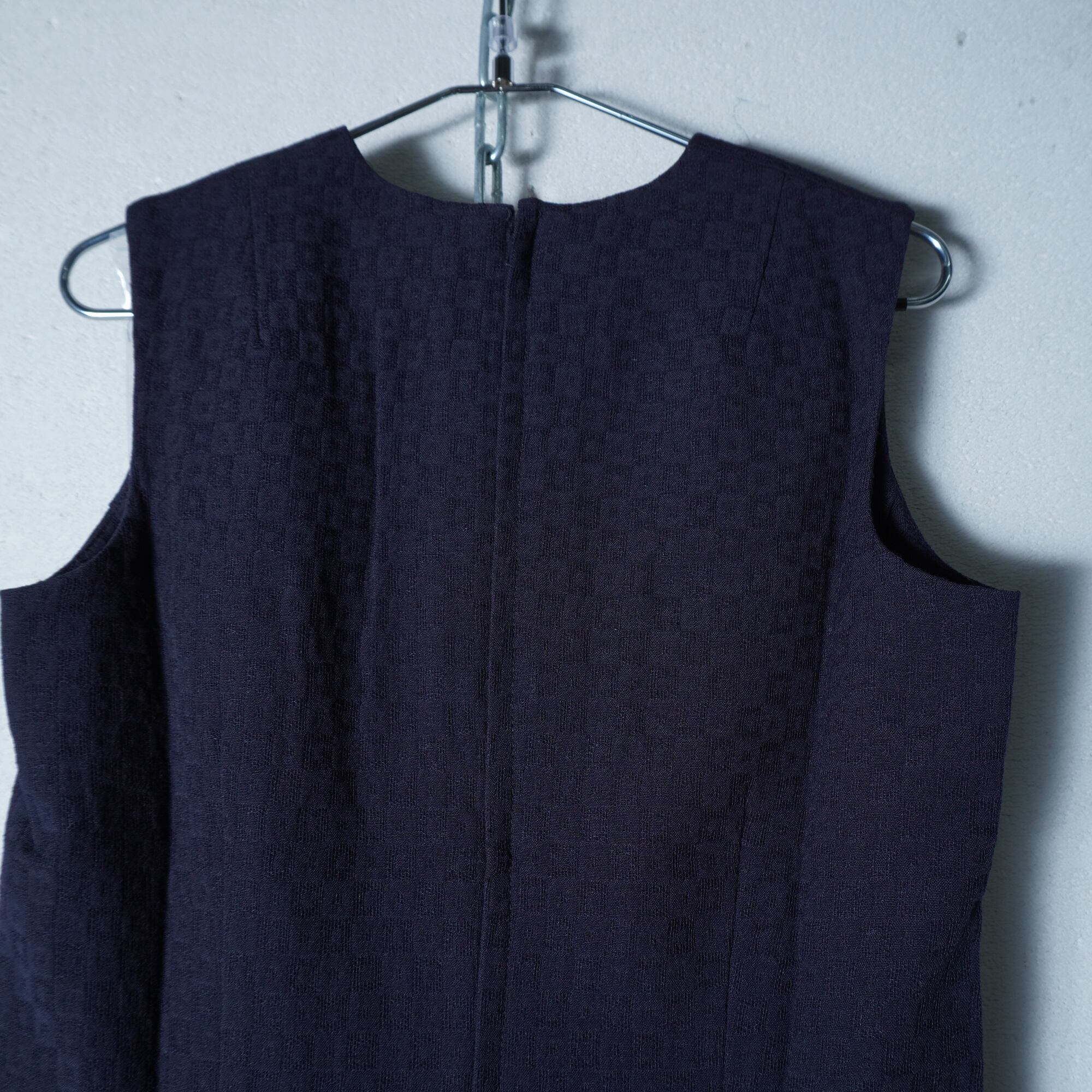 【COMME des GARÇONS】コムデギャルソン 99年製 極美品 タグ付 四角柄ノースリーブウールワンピース dark navy