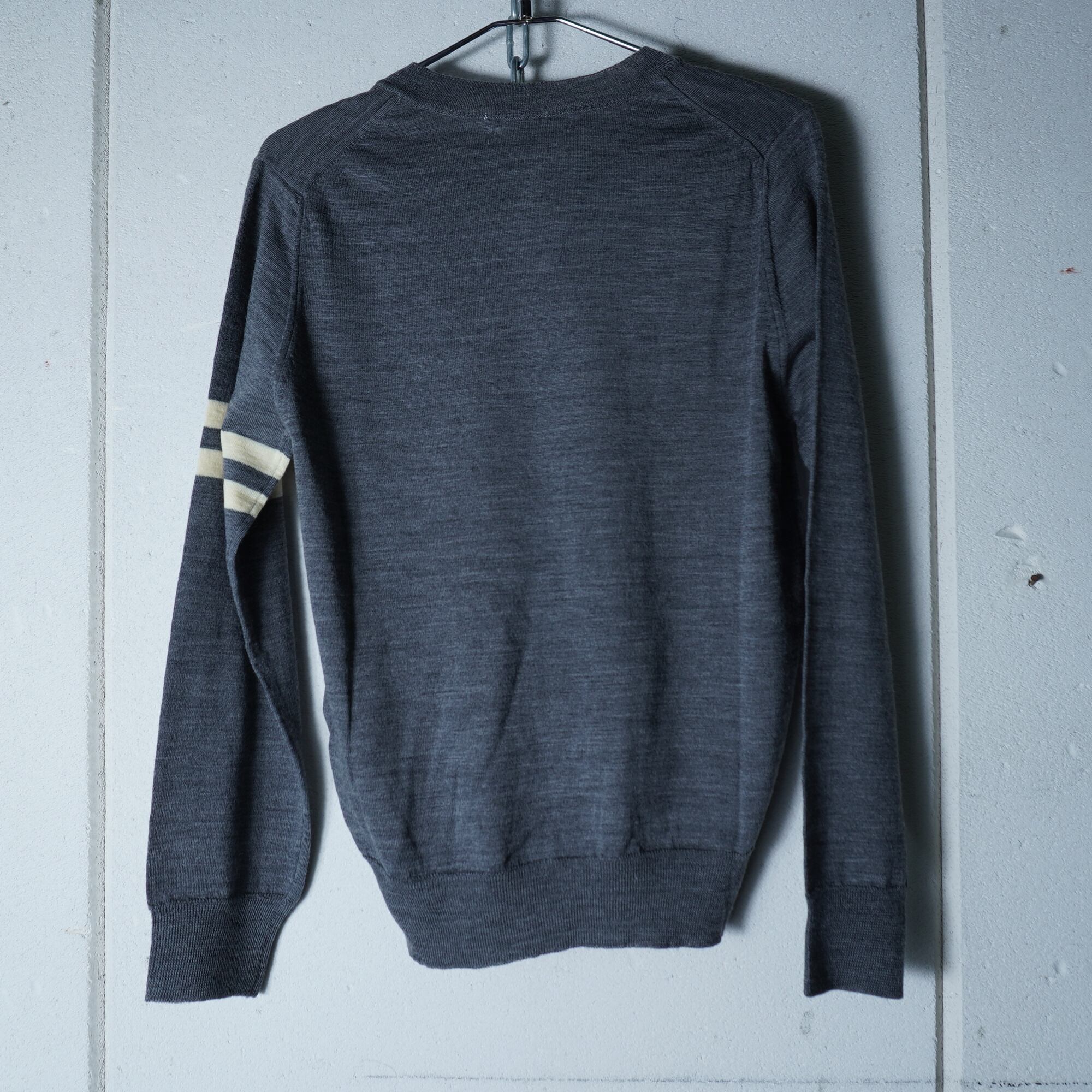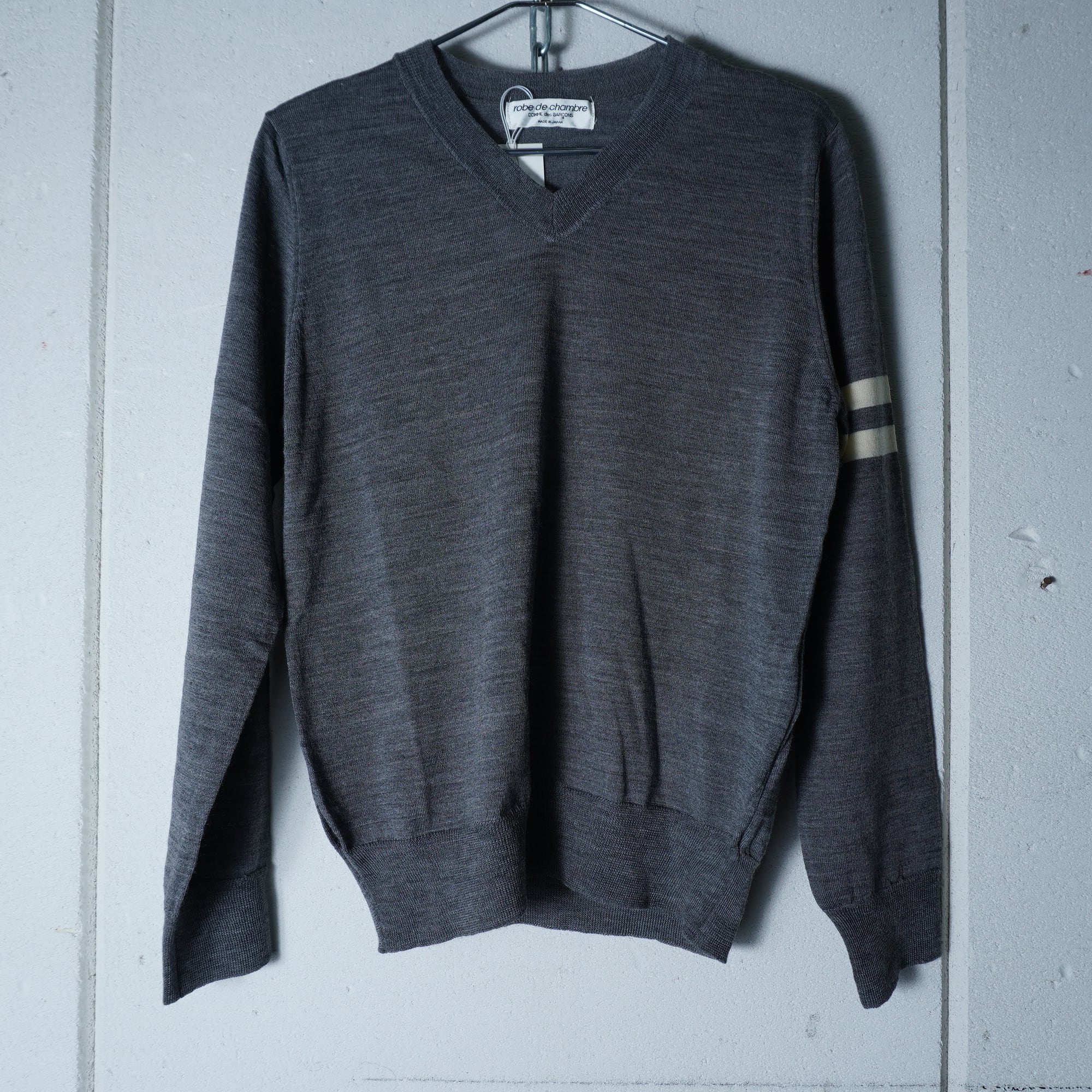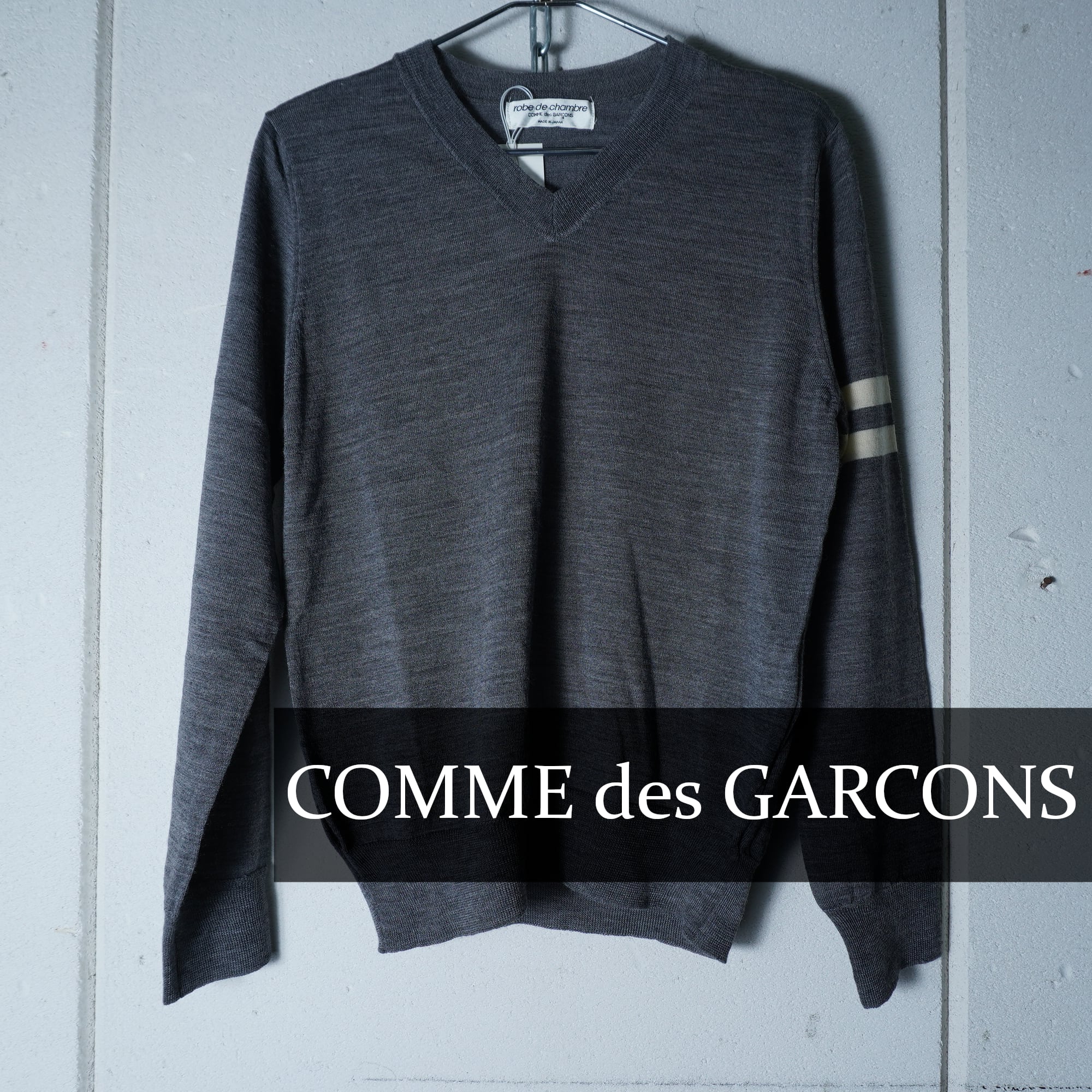 【COMME des GARÇONS】コムデギャルソン 98年製 極美品 タグ付 ウール100Vネックホワイトラインニット gray