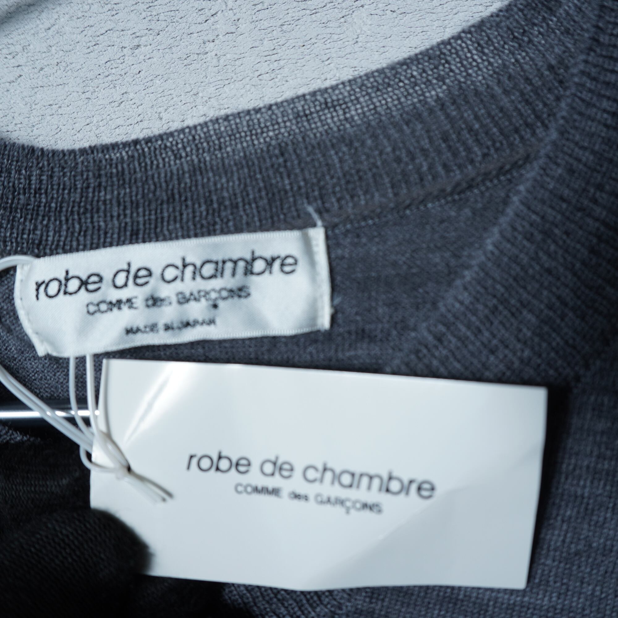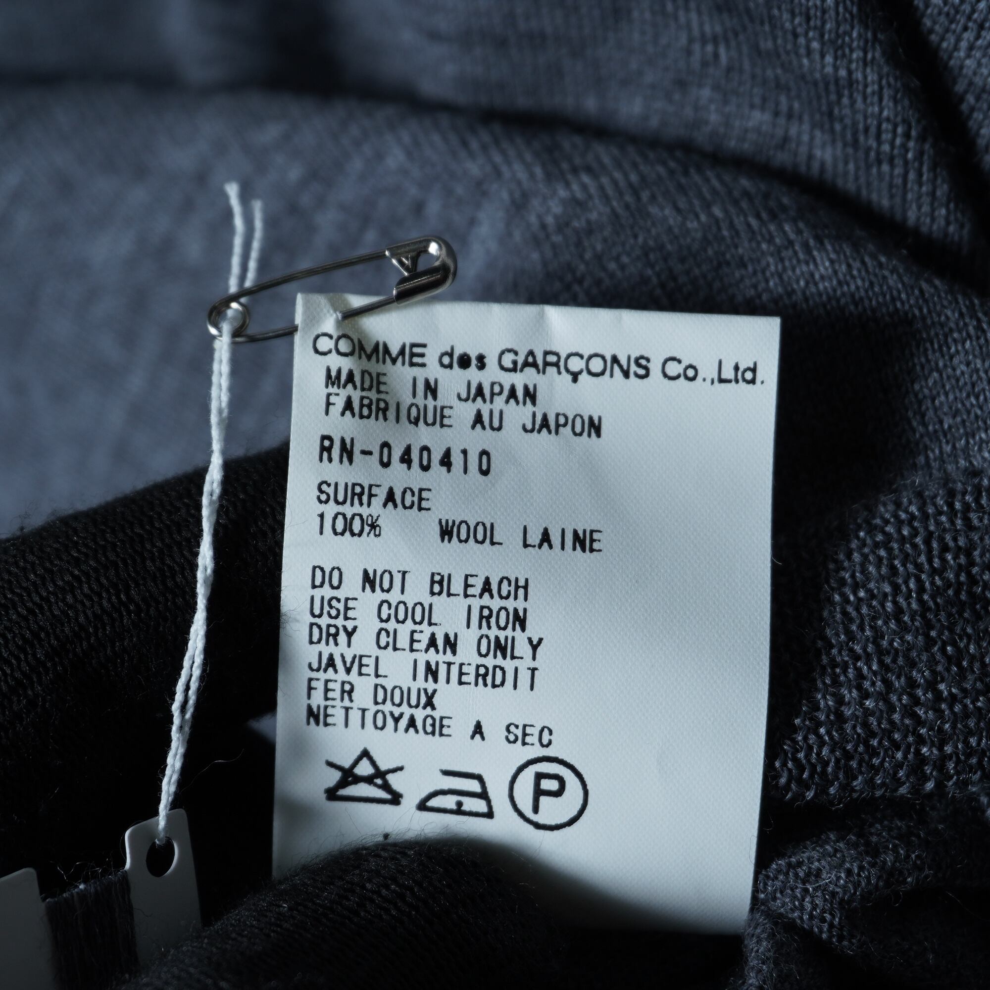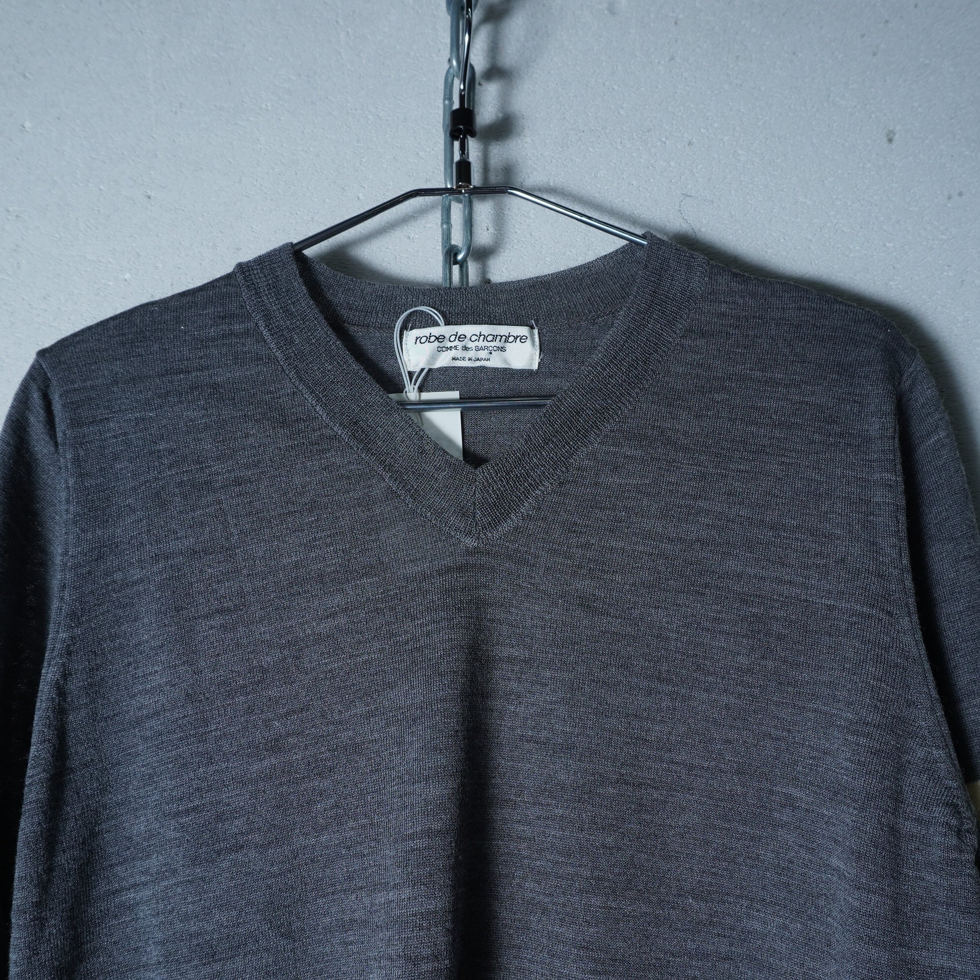 【COMME des GARÇONS】コムデギャルソン 98年製 極美品 タグ付 ウール100Vネックホワイトラインニット gray
