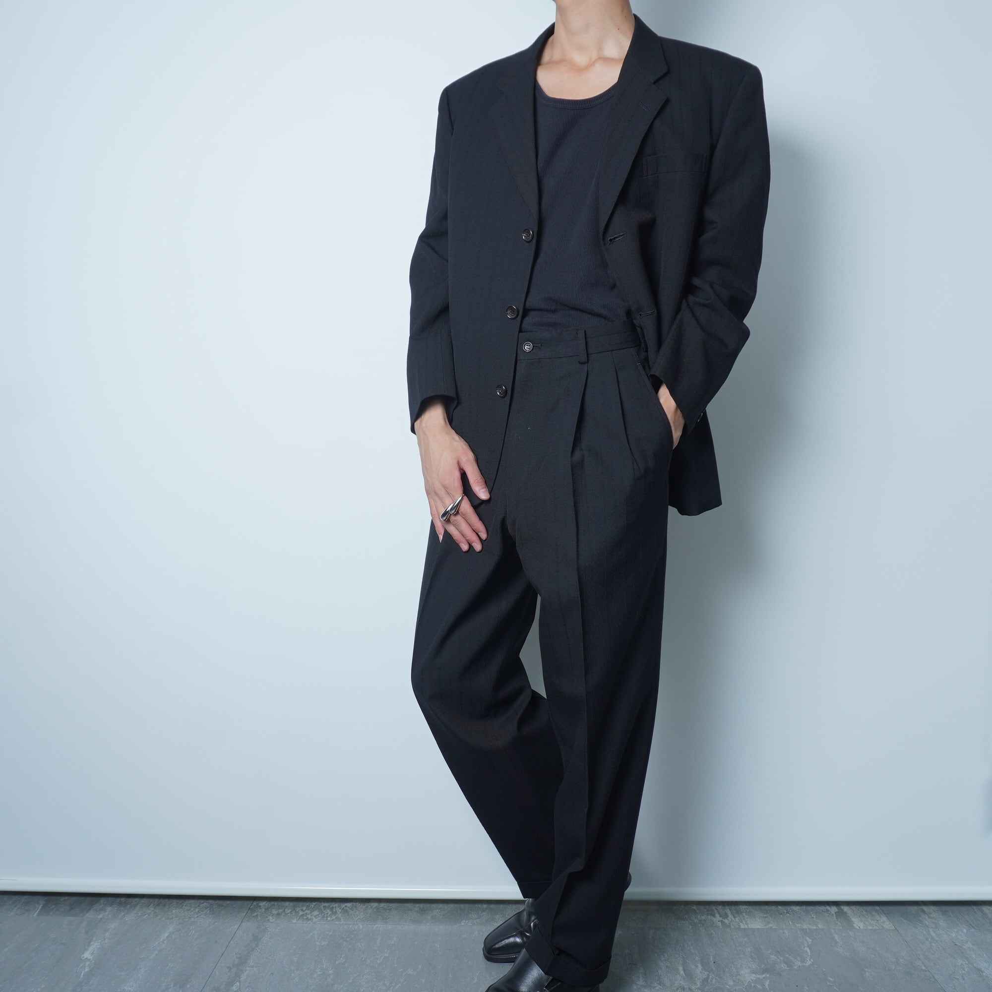 【COMME des GARCONS】コムデギャルソン "98年製”WOOL100%シャドーストライプシングル3ボタンセットアップスーツ black