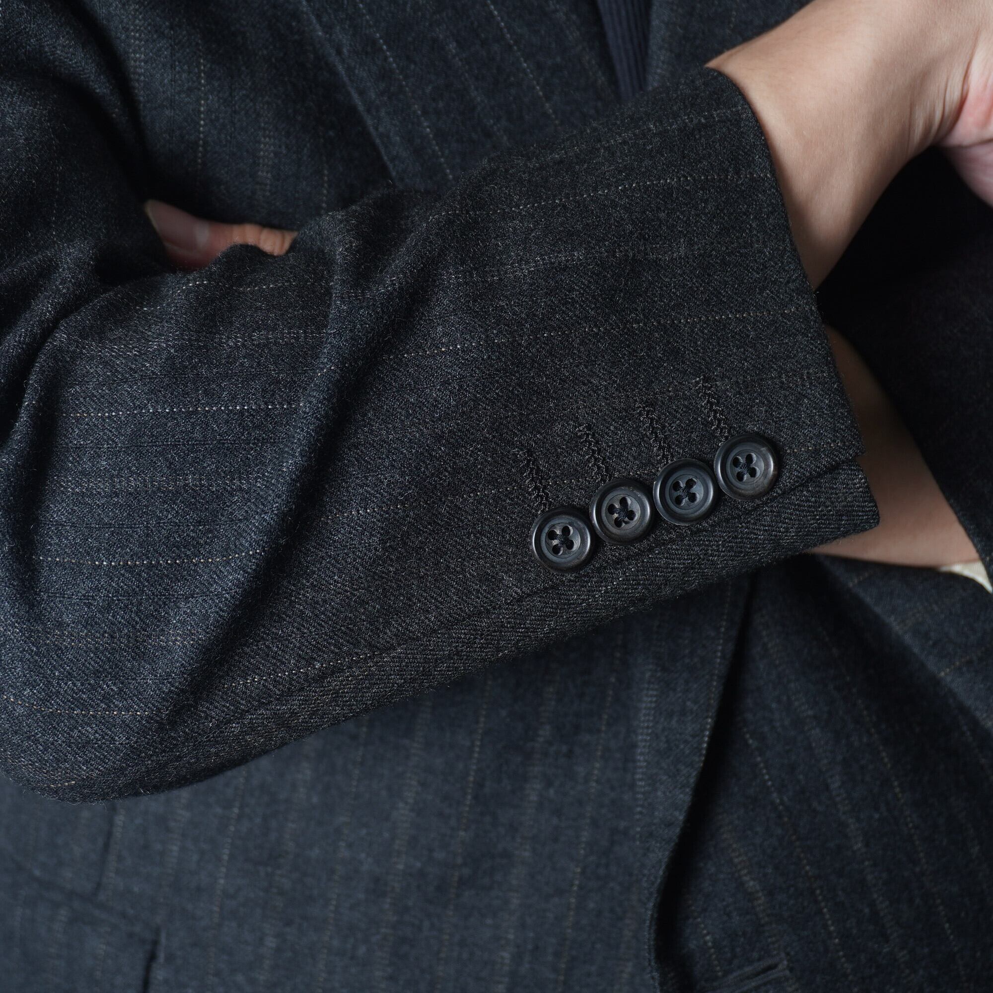 【BURBERRY】バーバリー "WOOL100%" ピンストライプ ダブルセットアップスーツ dark gray