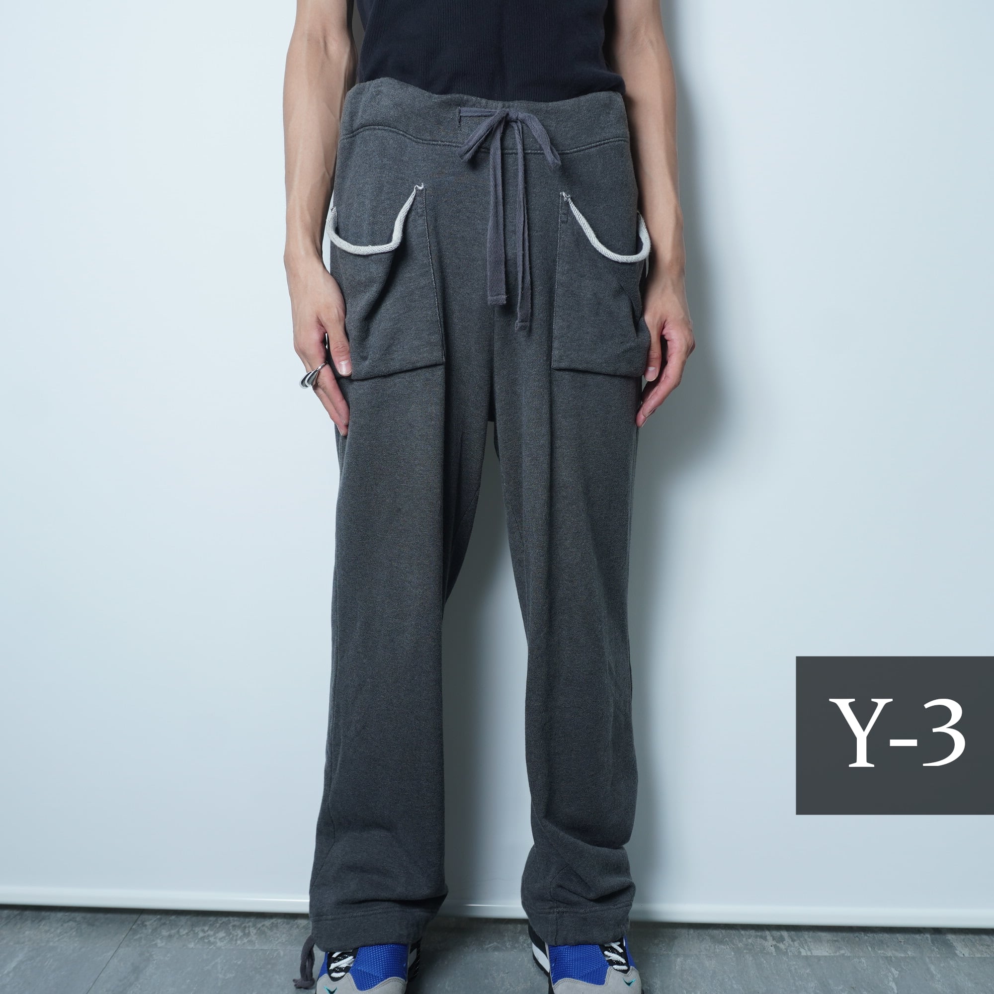 【Y-3】ワイスリー "ロゴ入”ドローストリングススウェットパンツ gray