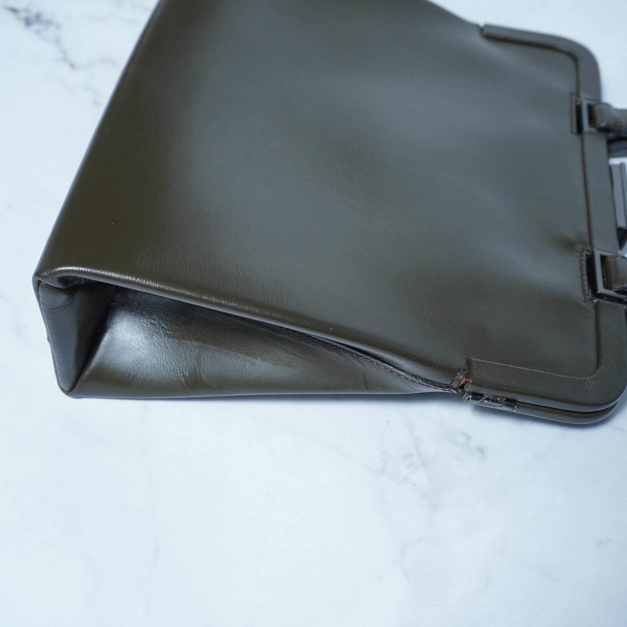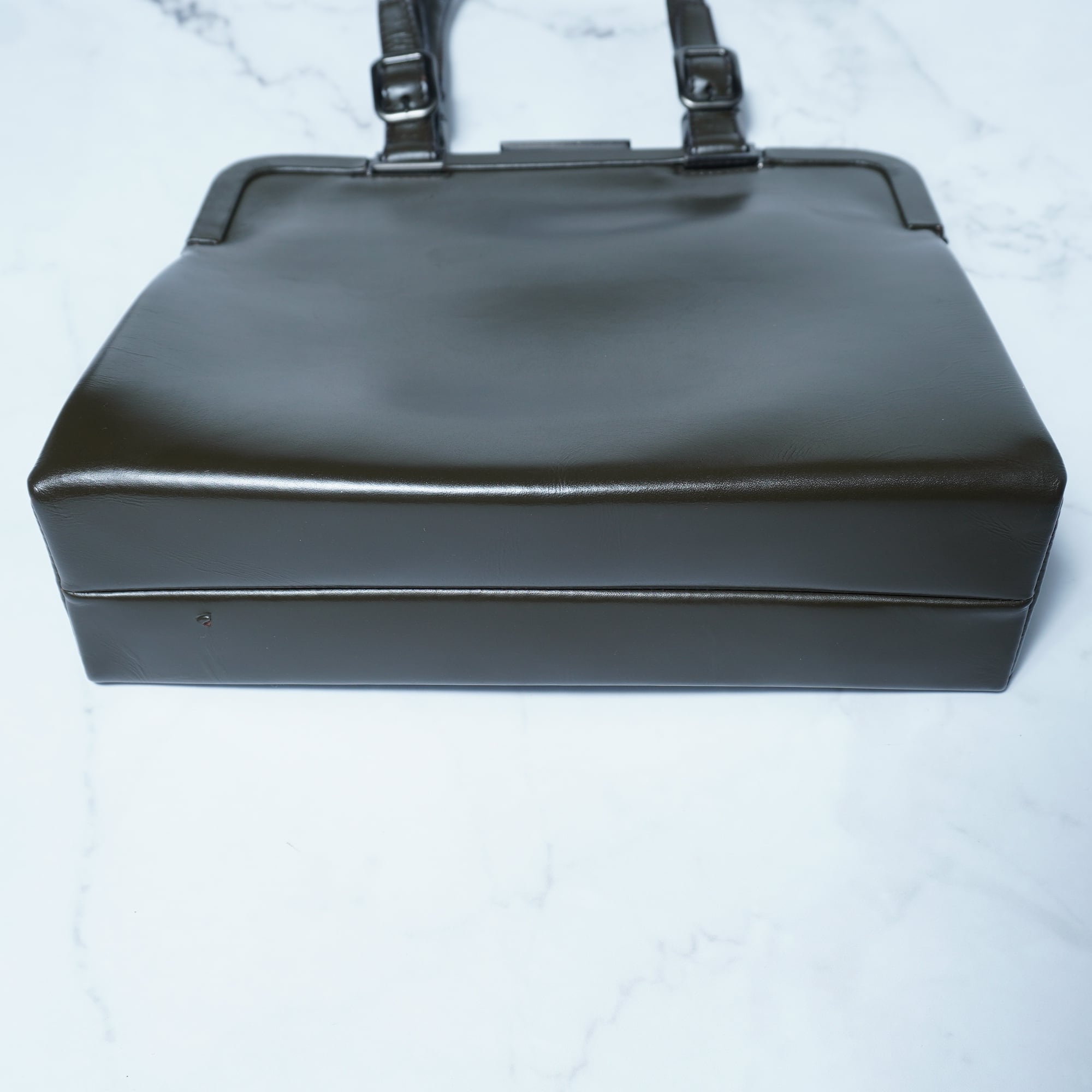 ・上品さと機能性を兼ね備えた【PRADA】プラダ "型押しロゴ”レザーハンドバッグ khaki