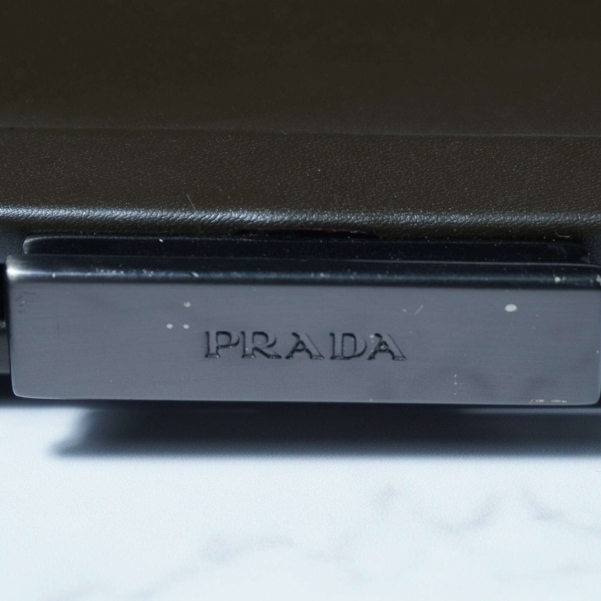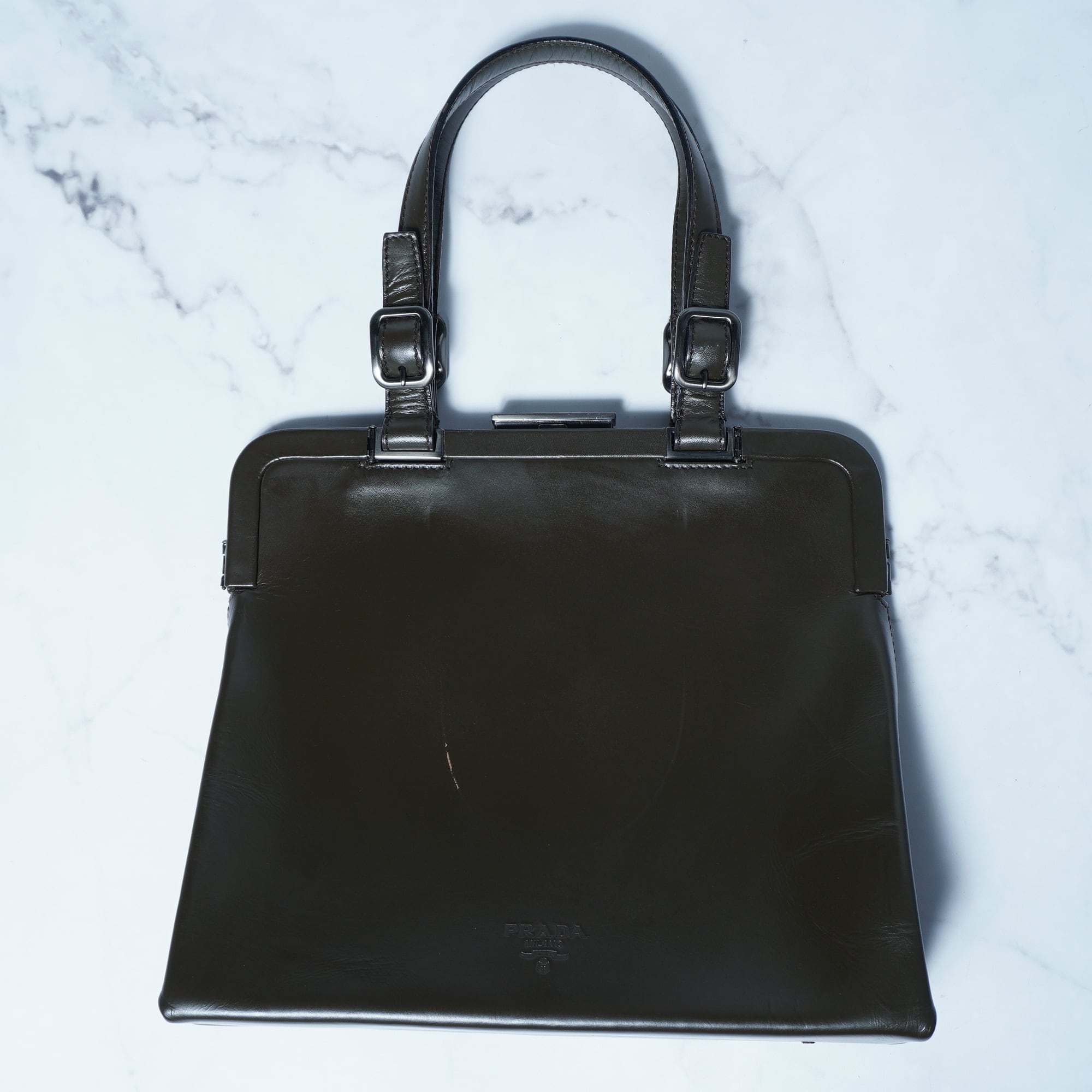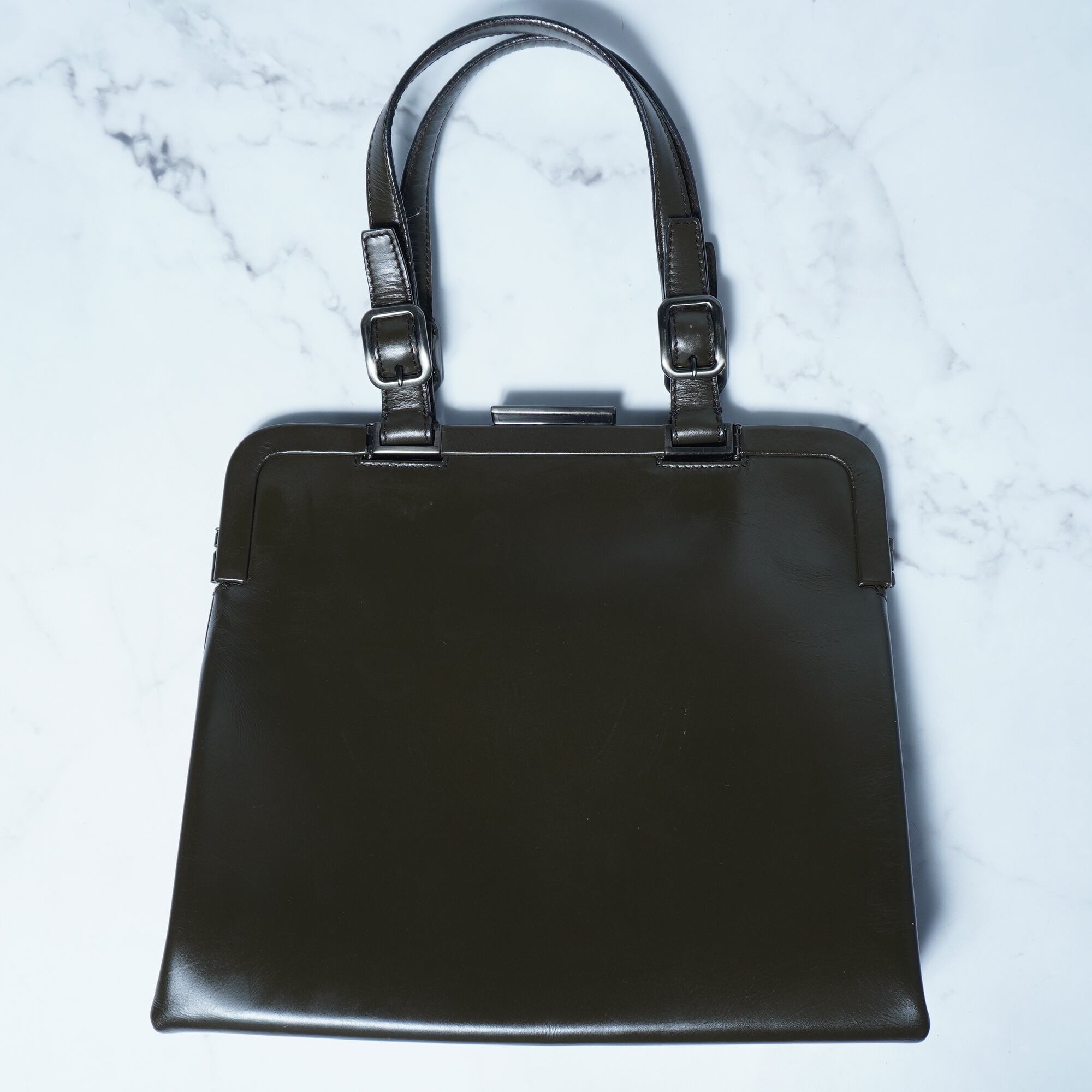 【PRADA】プラダ "型押しロゴ”レザーハンドバッグ khaki