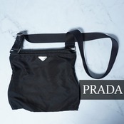 【PRADA】プラダ ”三角プレートロゴ” レザー切替ナイロンショルダーバッグ black