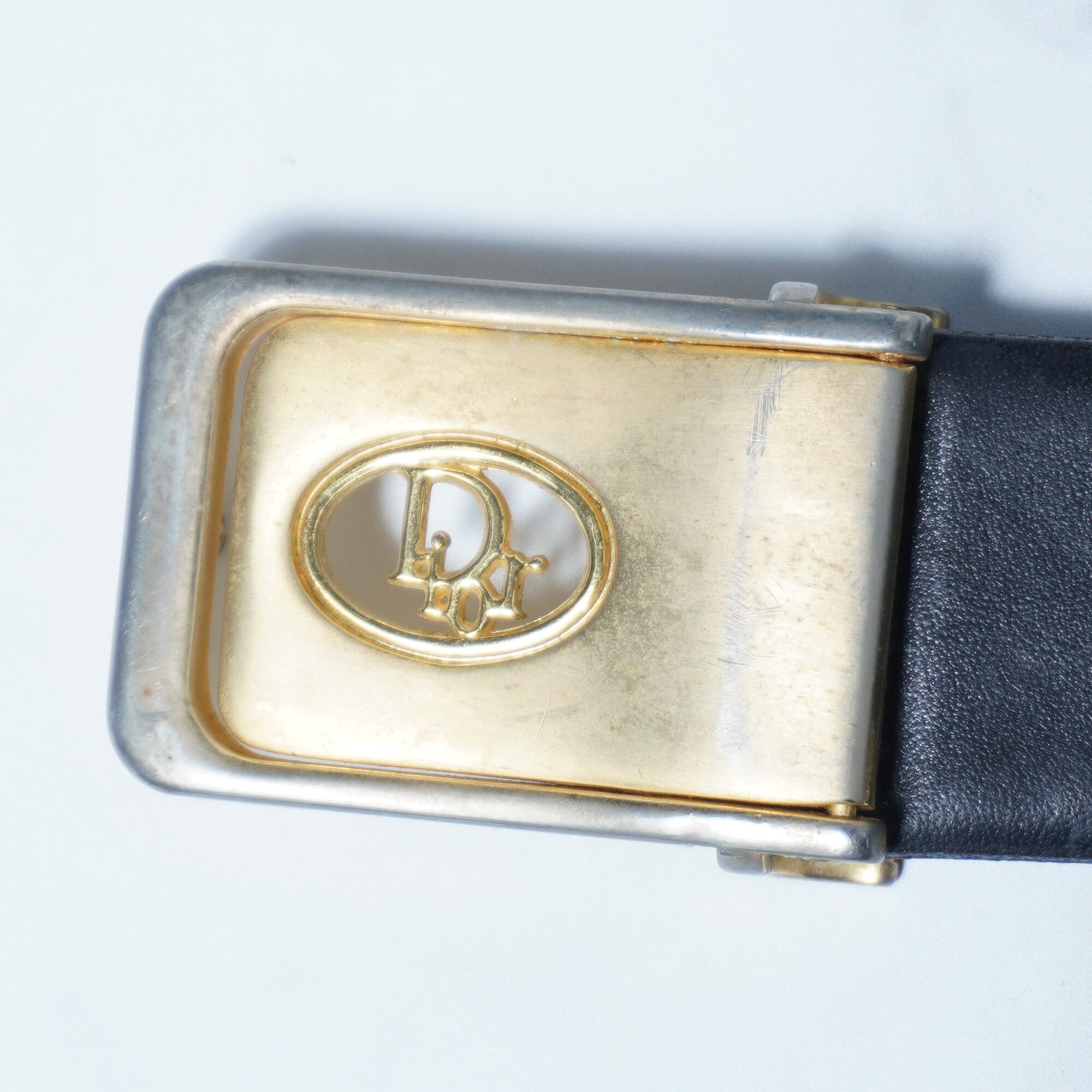 【Christian Dior】クリスチャンディオール トロッターロゴ ゴールドバックルレザーベルト black