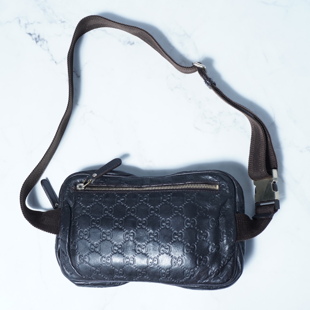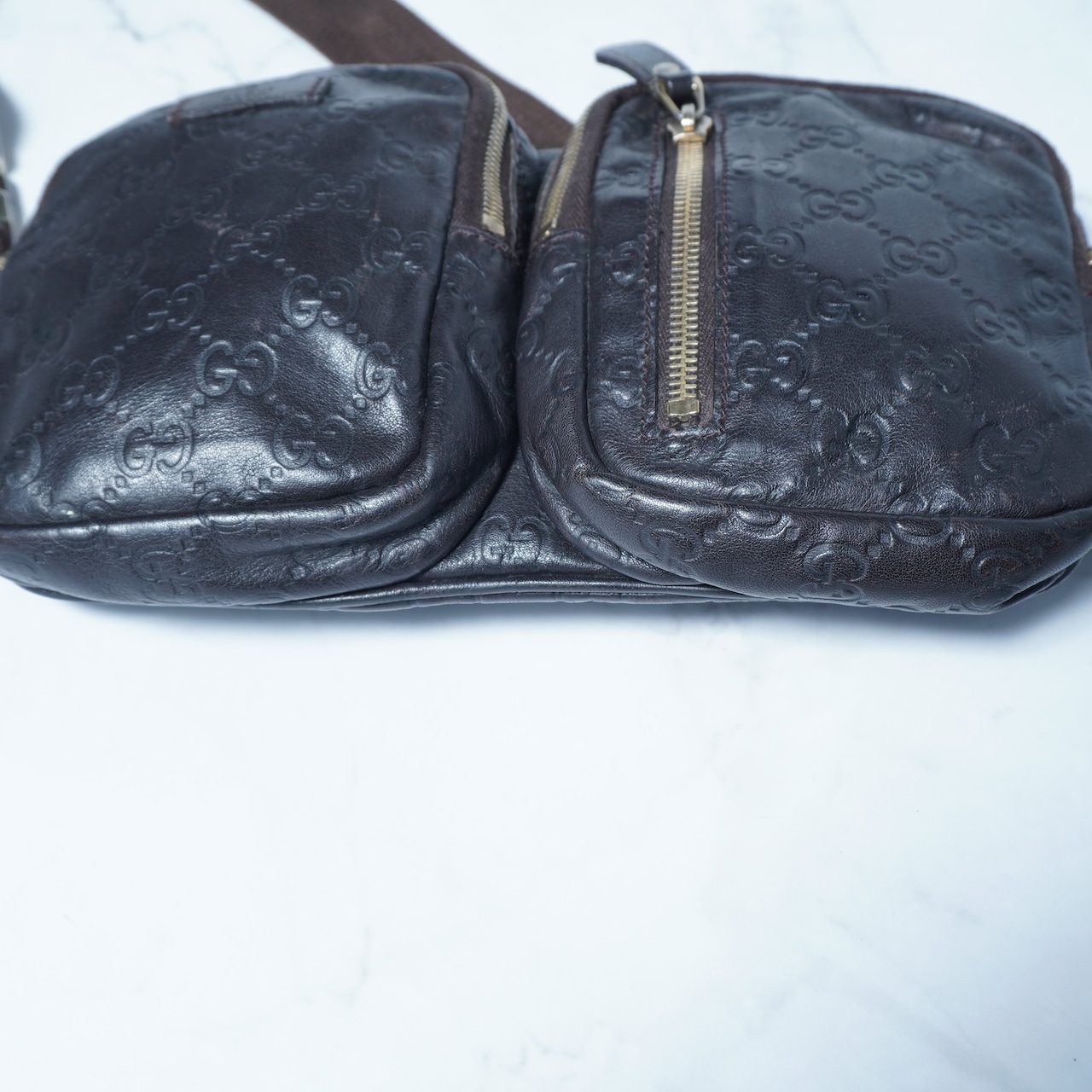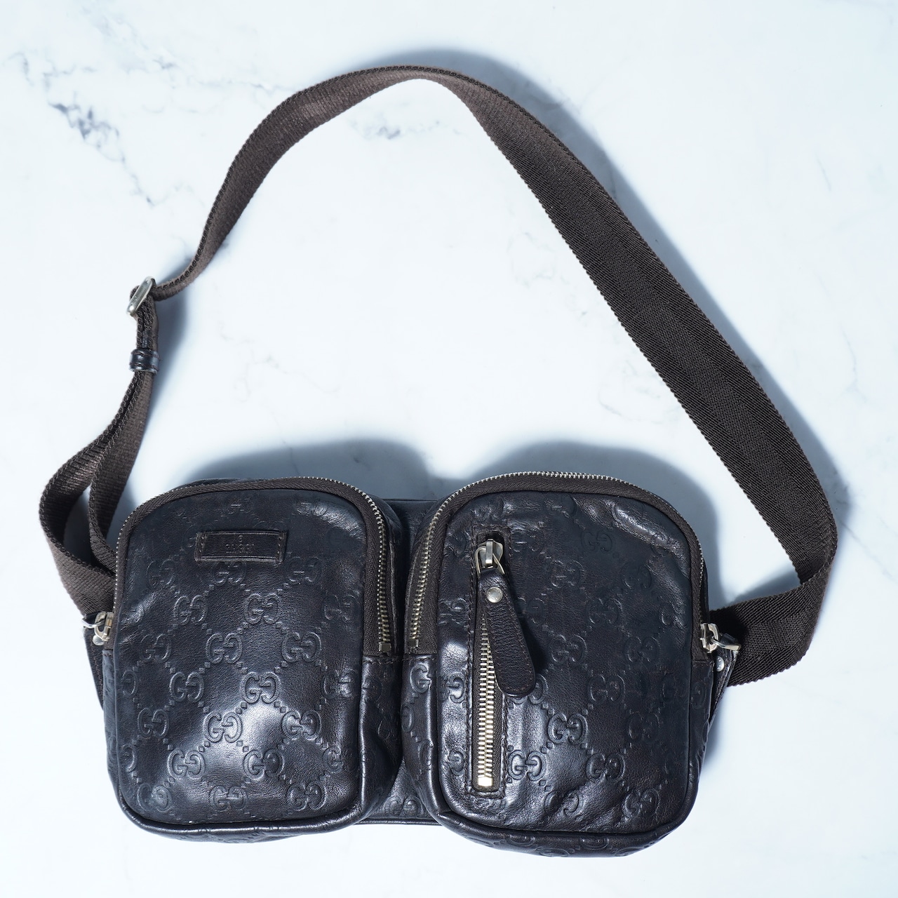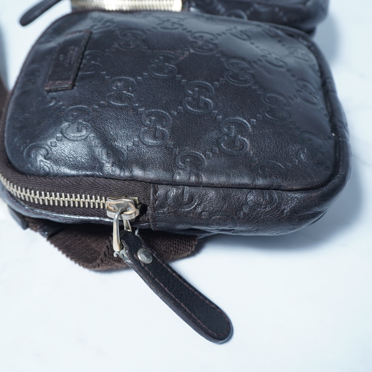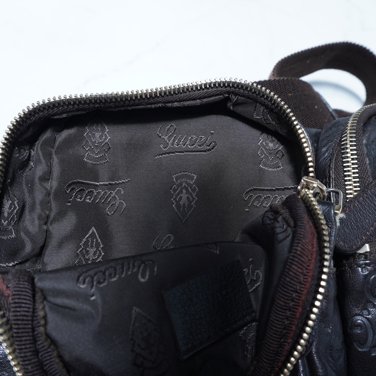 【GUCCI】グッチ 型押GG柄レザーショルダーボディバッグ dark brown