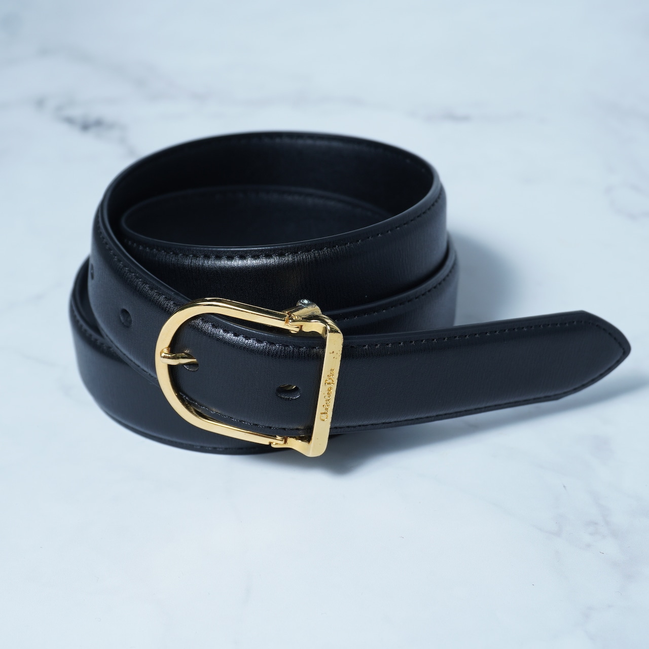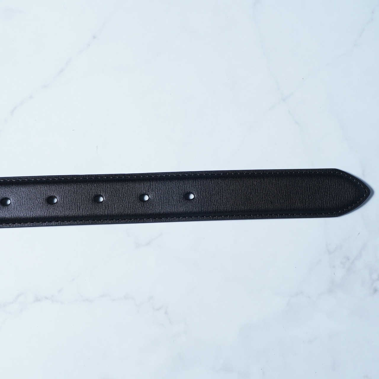 ・シンプルで洗練されたデザインのロゴ入レザーベルト