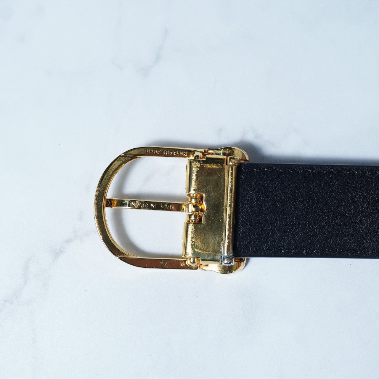 【Christian Dior】クリスチャンディオール ロゴ入 ゴールドバックルレザーベルト black