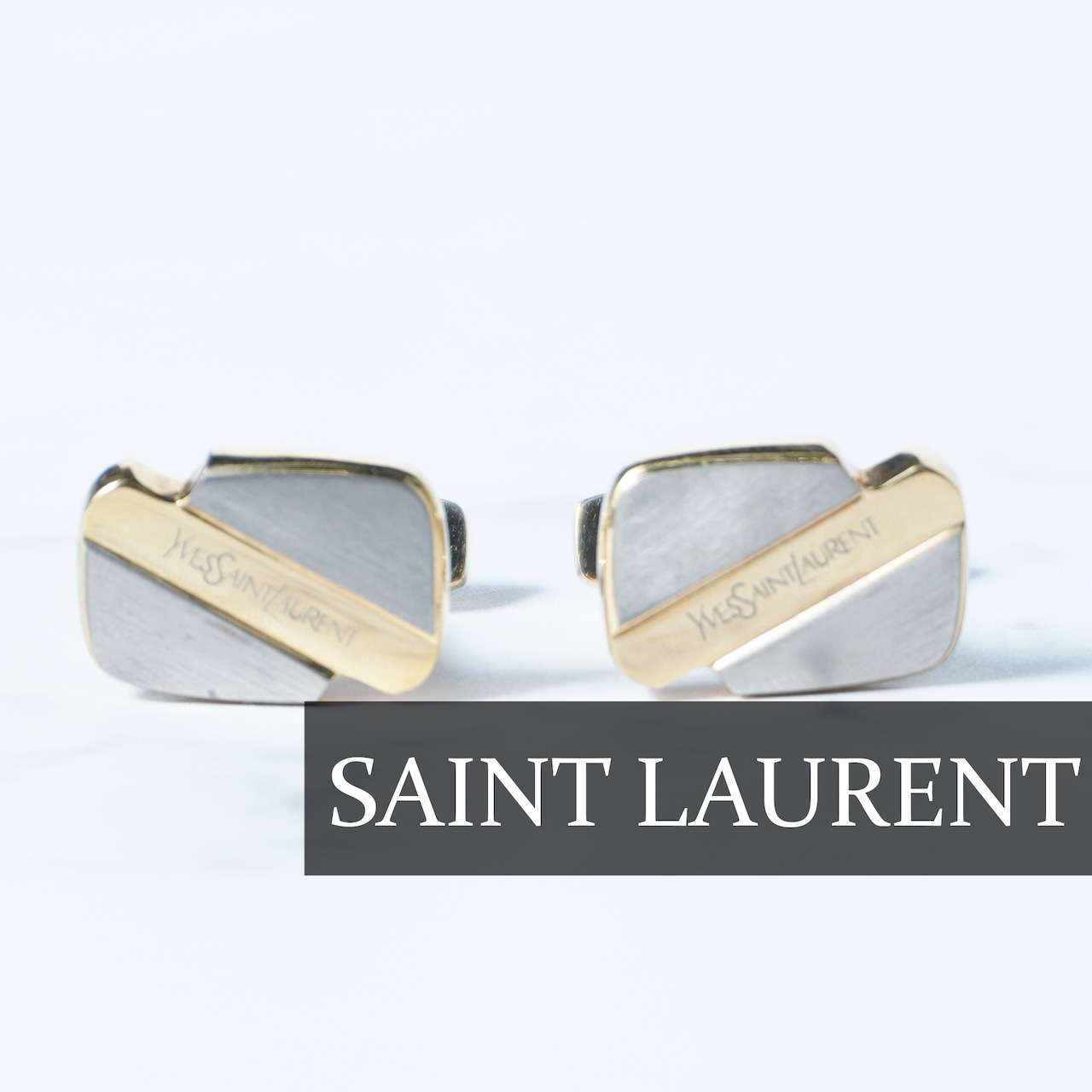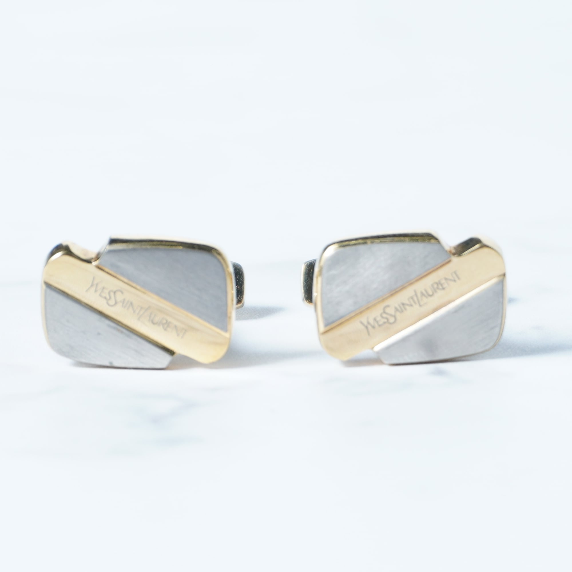 【Yves Saint Laurent】イブサンローラン "ロゴ入" カフスピン silver & gold
