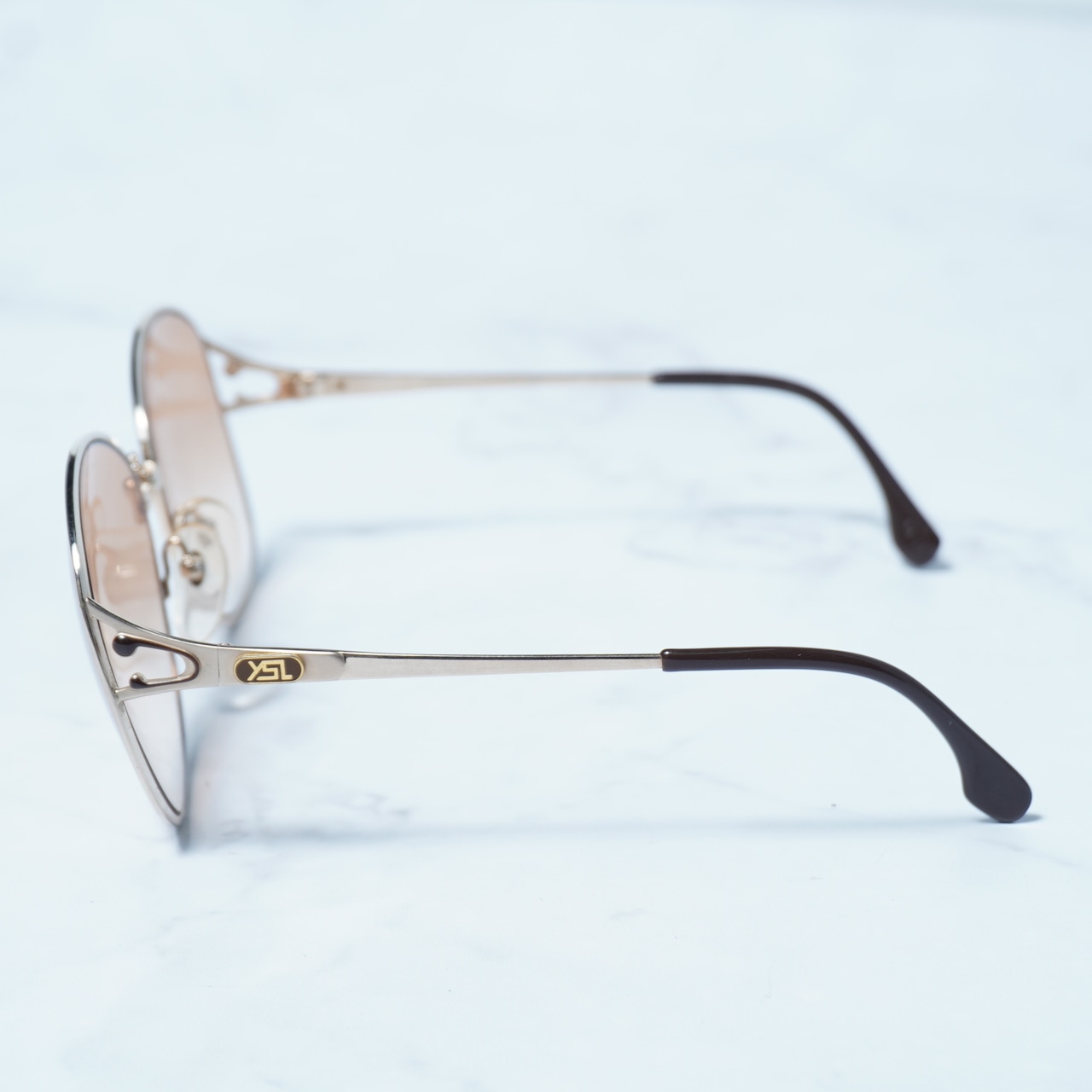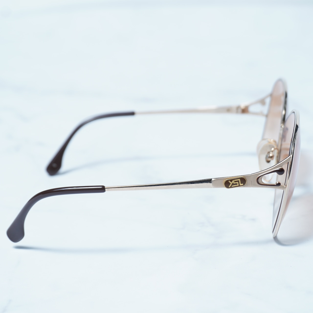 【Yves Saint Laurent】イブサンローラン "サイドロゴ入" メタルフレームブラウンレンズサングラス gold
