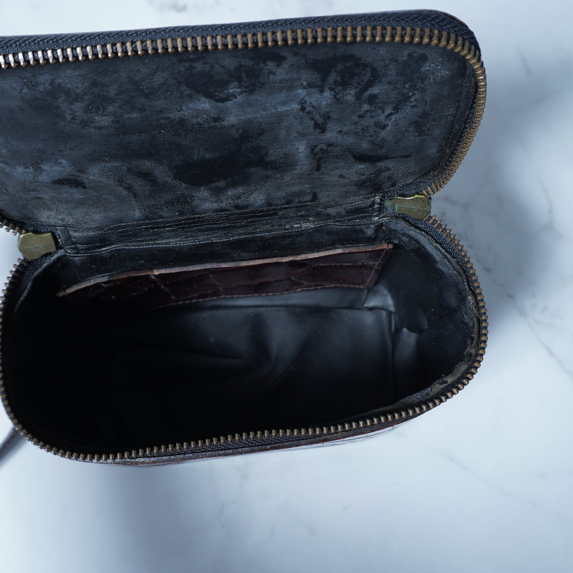 【Jean Paul GAULTIER】ジャンポールゴルチエ"Archive" 型押しロゴクロコダイルレザーショルダーバッグ brown