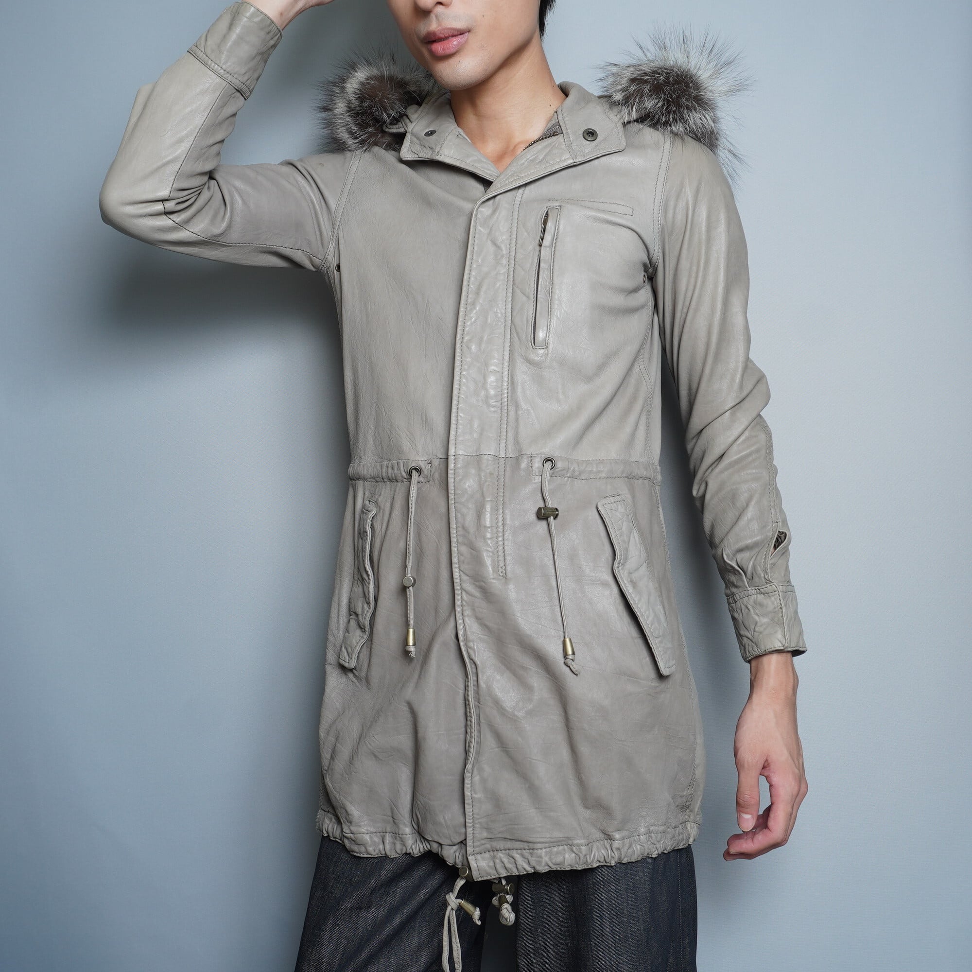 【LUVA TRAM】ルーバトラム リアルフォックスファーラムレザーモッズコート sand beige