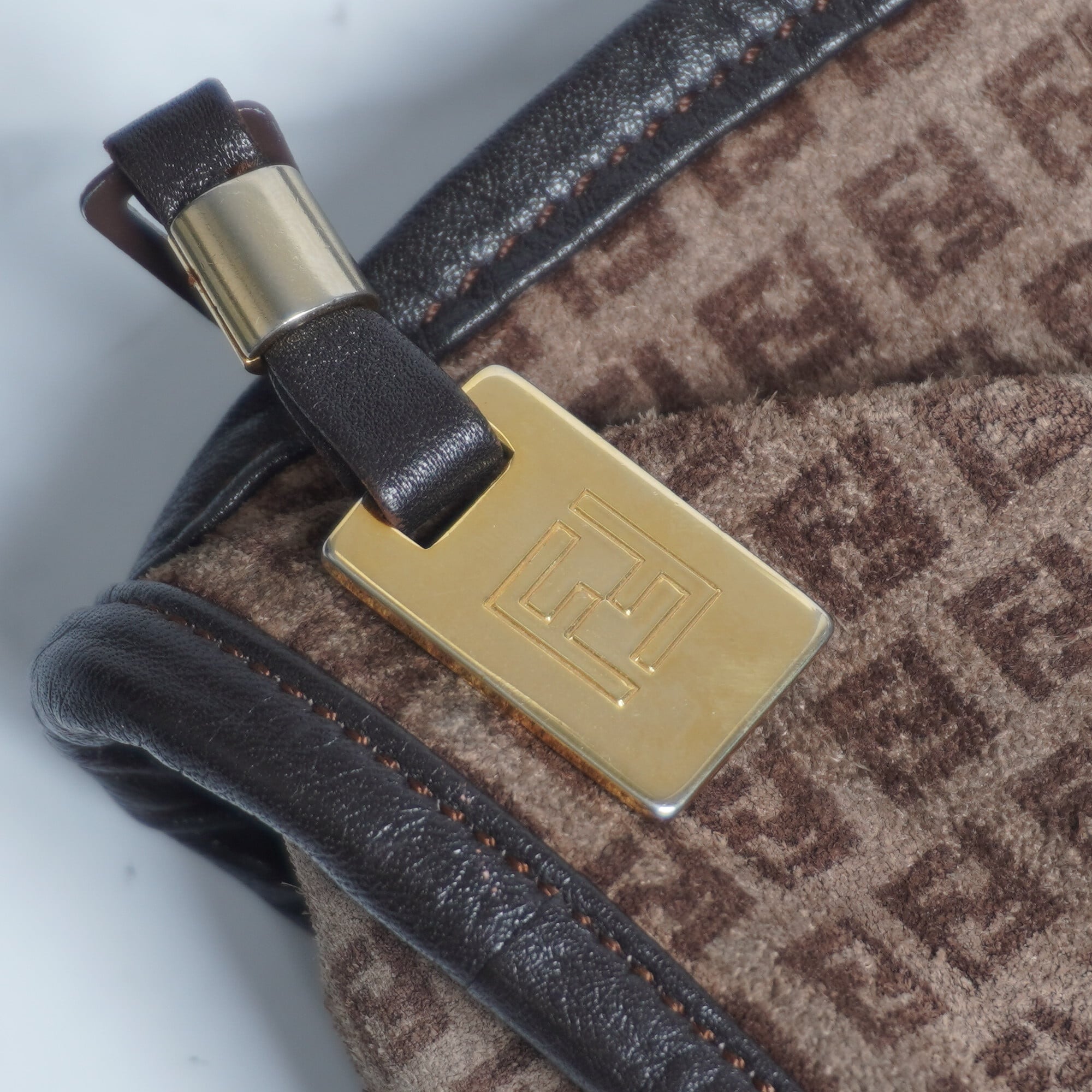 【FENDI】フェンディ vintage ズッカ柄レザー切替ハンドバッグ brown
