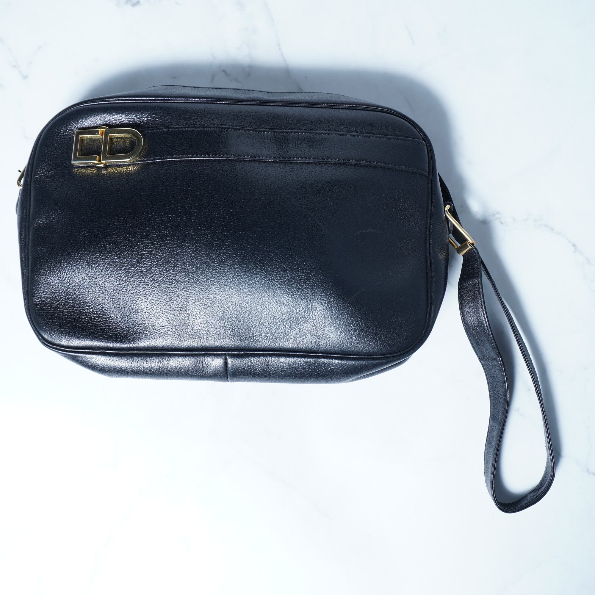 【Christian Dior】クリスチャンディオール ”金装飾CDロゴ” シボ加工レザーショルダーバッグ black
