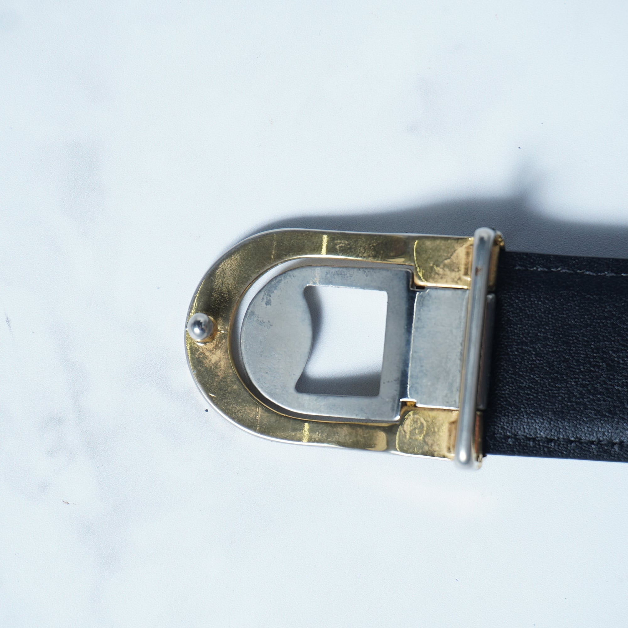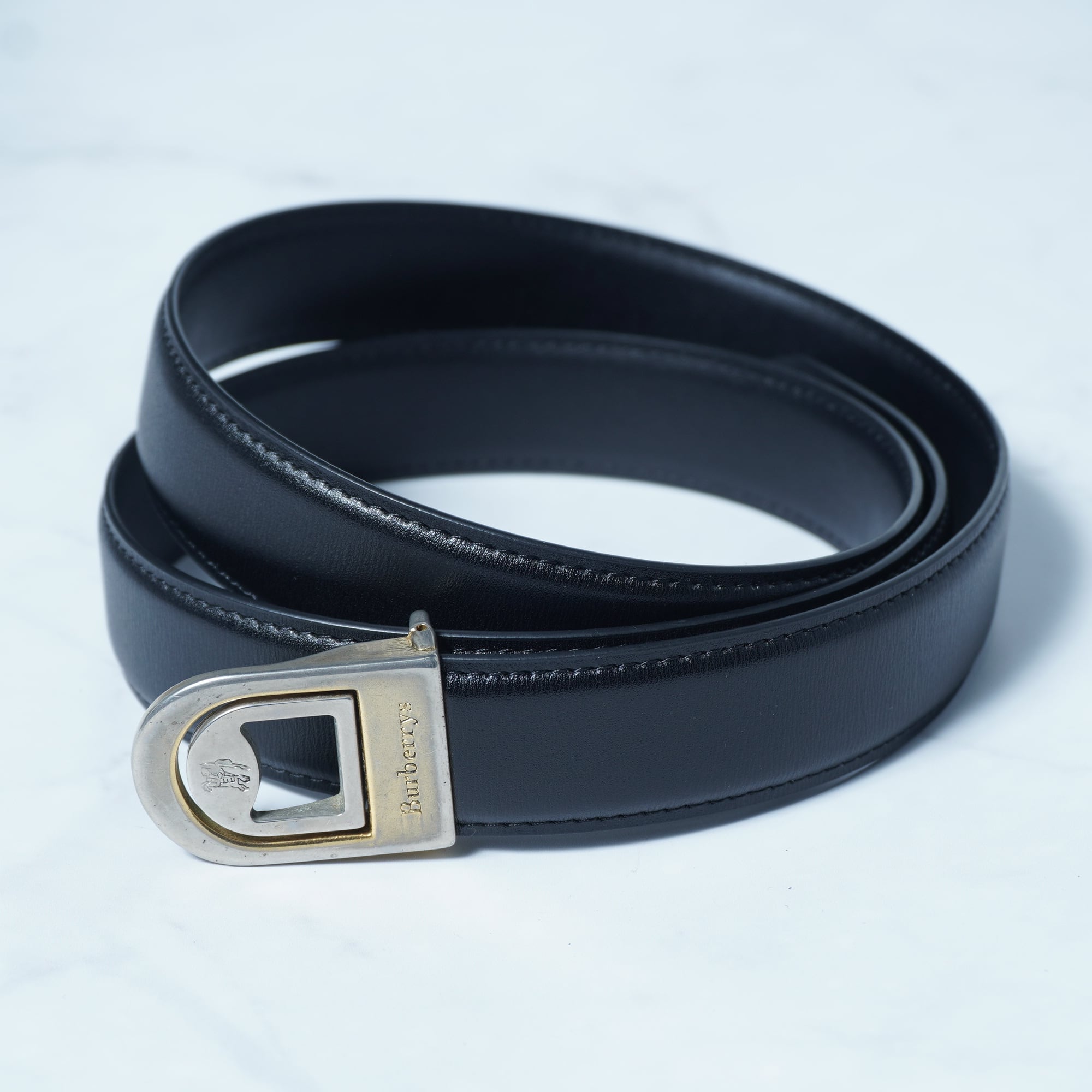 【BURBERRY】バーバリー ”ホースロゴ” ゴールド&シルバーバックルレザーベルト black