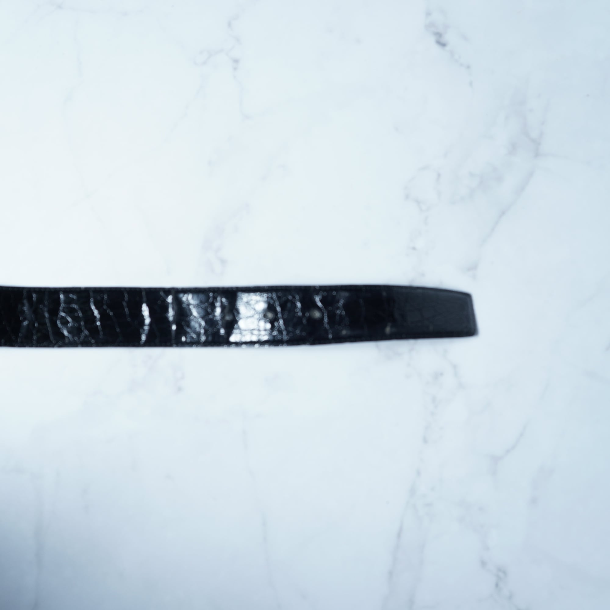 【GUCCI】グッチ G字型ゴールドバックル型押クロコダイルレザーベルト black