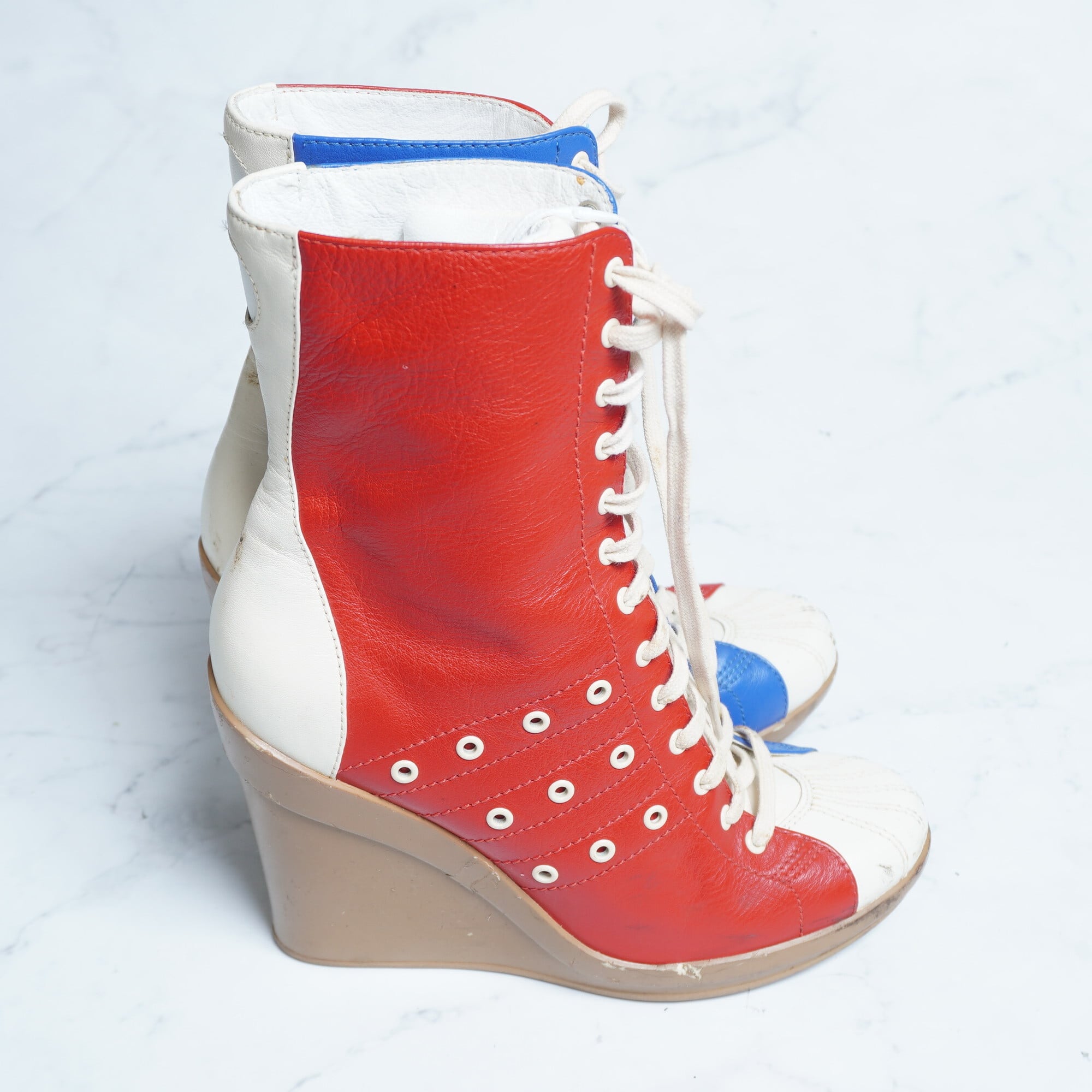 【JEREMY SCOTT】ジェレミースコット×アディダス バイカラーボクシングレースアップブーツ red blue UK6
