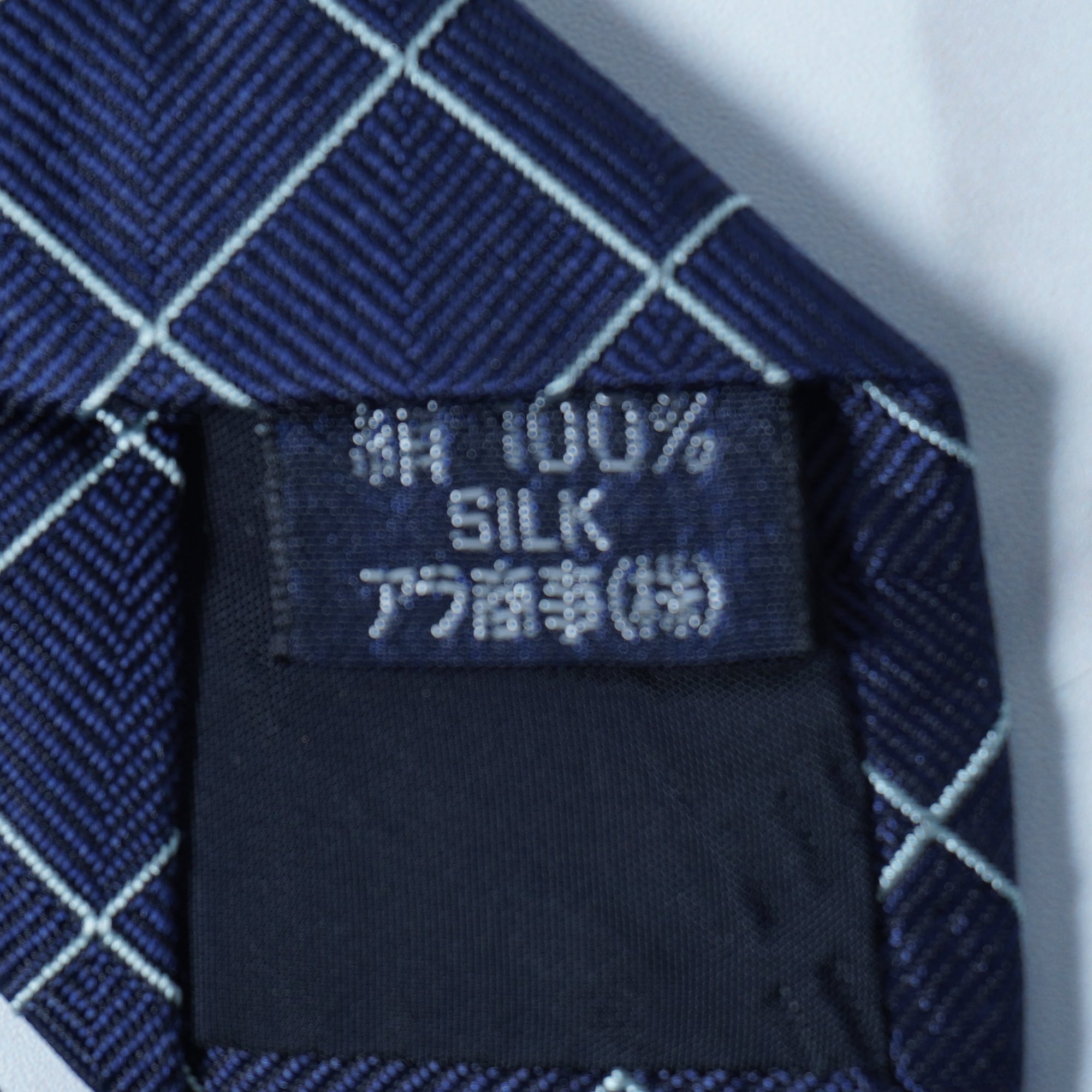 【BURBERRY】バーバリー "SILK100%"マス目柄ネクタイ navy
