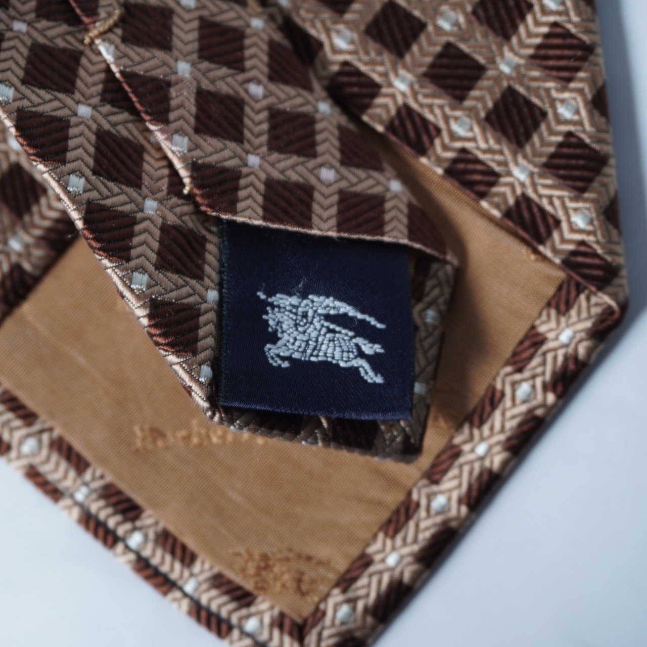 【BURBERRY】バーバリー ”SILK100%”スクエアドット総柄ネクタイ brown beige