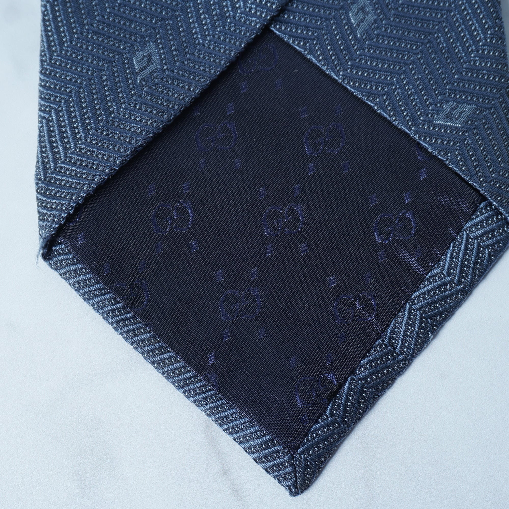【GUCCI】グッチ "SILK100%"ロゴ総柄ネクタイ navy