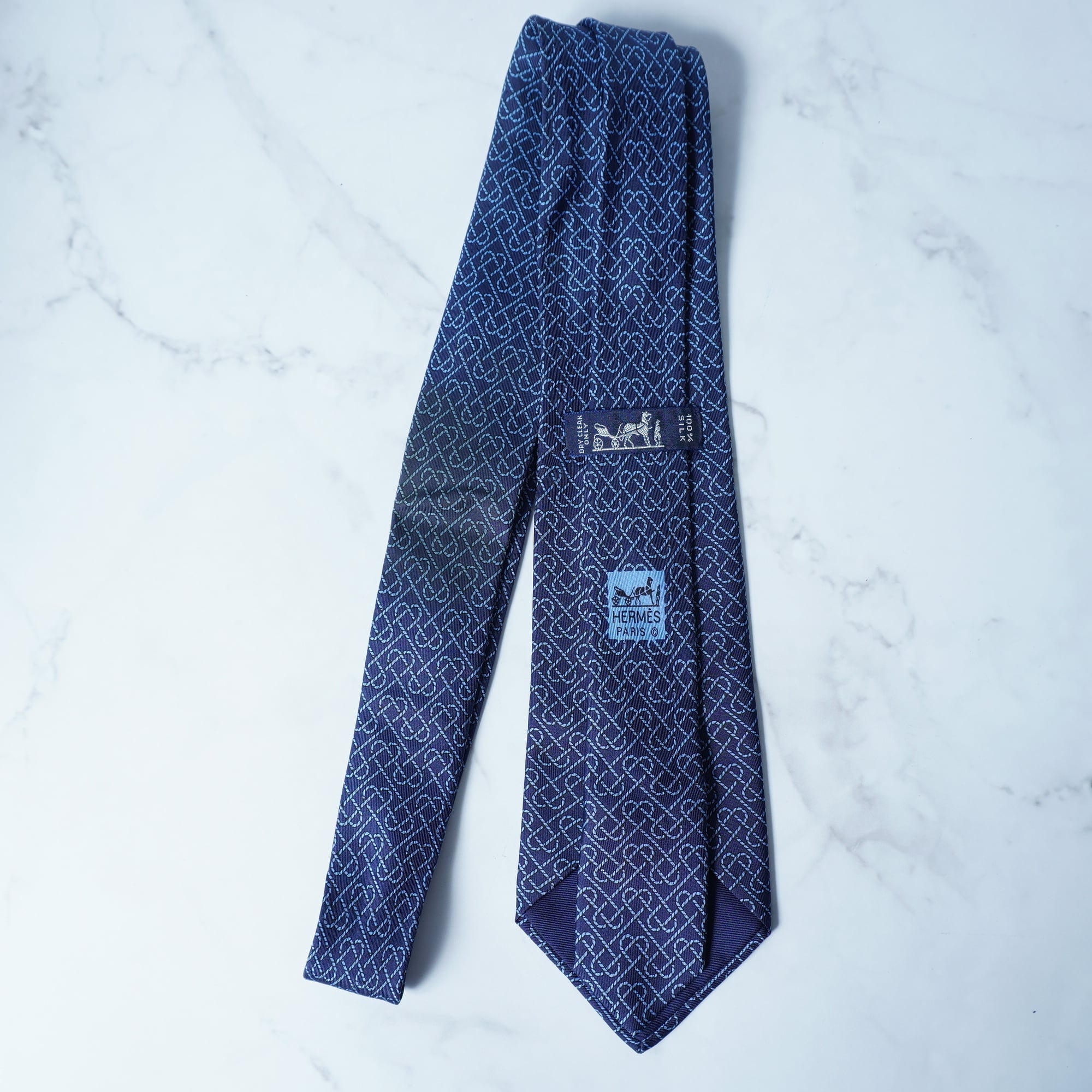 【HERMES】 エルメス "SILK100%" ロープ柄 ネクタイ blue