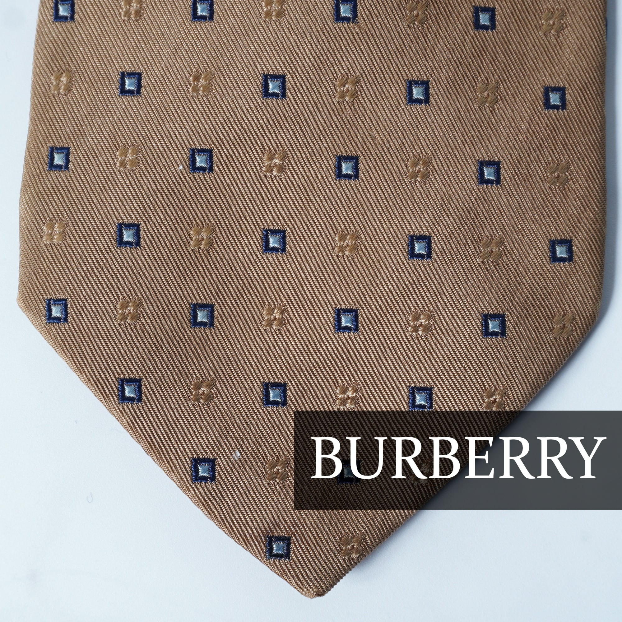 【BURBERRY】バーバリー "シルク100%”ホースロゴ刺繡スクエアドットネクタイ brown