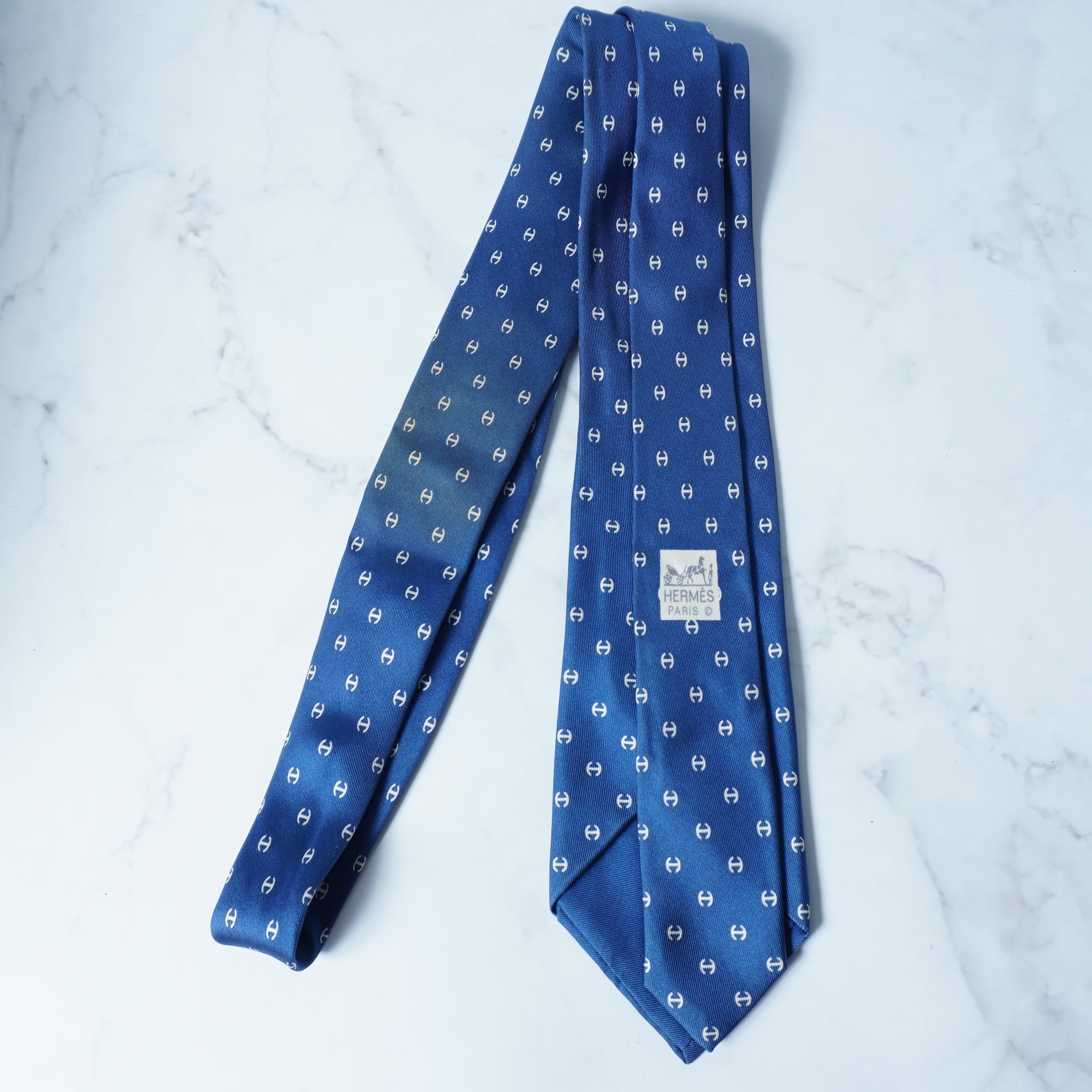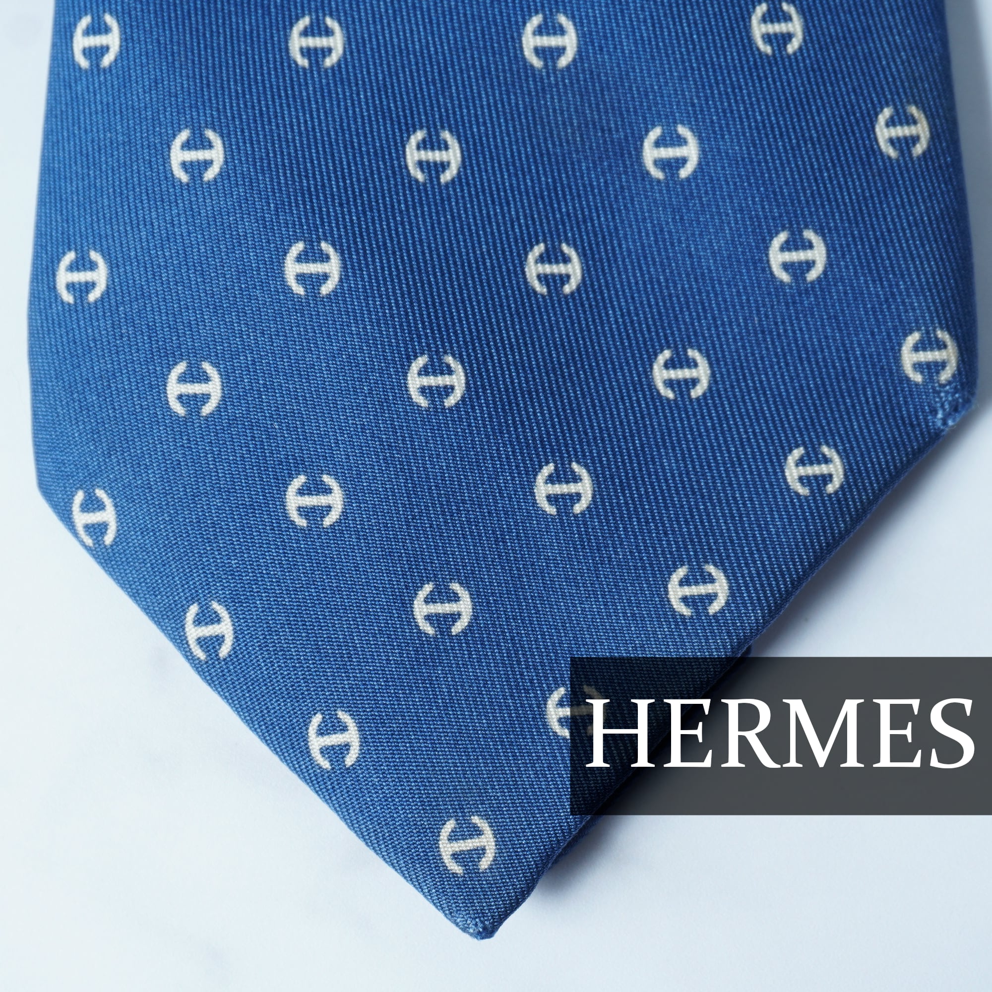 【HERMES】エルメス ”シルク100%”総柄ネクタイblue