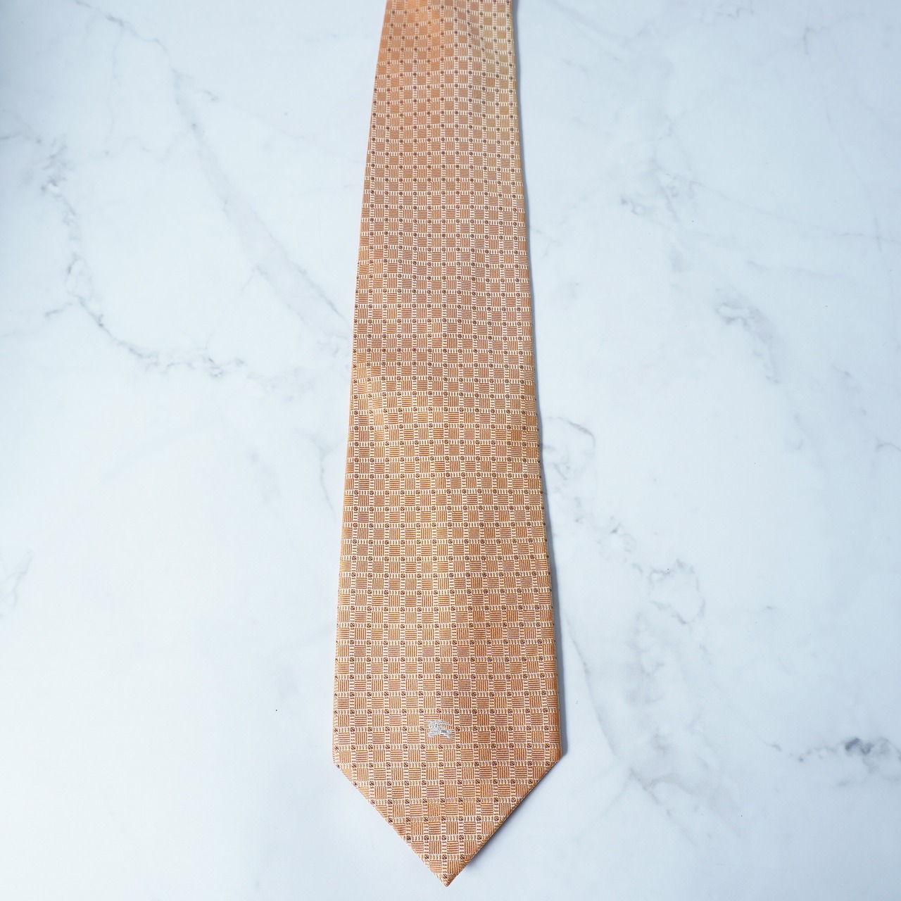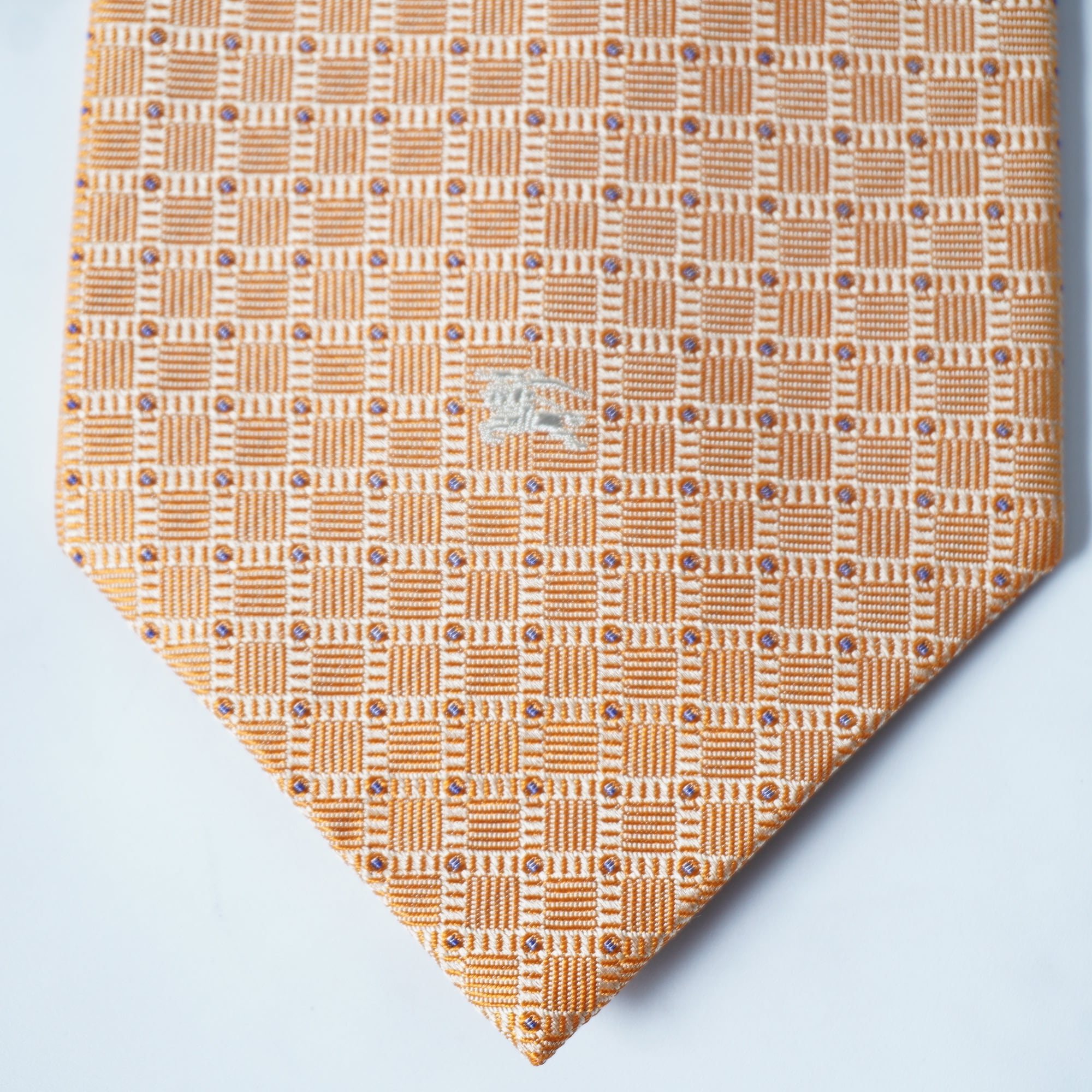 【BURBERRY】バーバリー ”シルク100%”ホースロゴ刺繡総柄ネクタイ orange