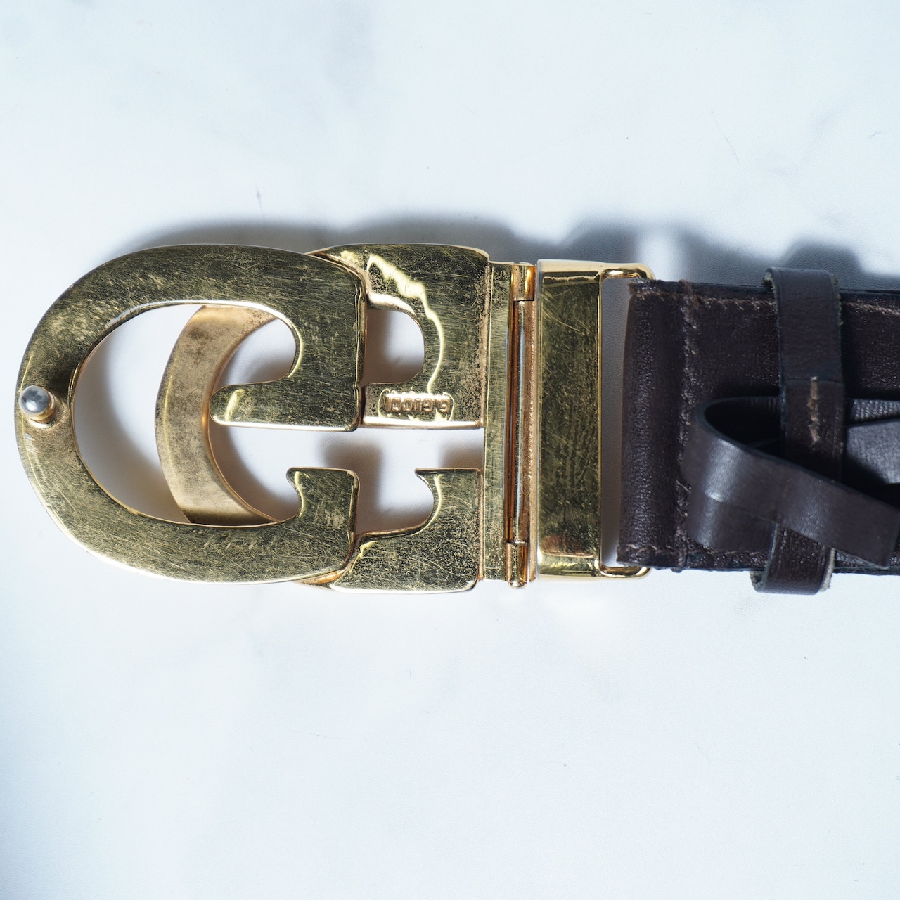 【GUCCI】グッチ GGロゴゴールドバックルレザーベルト brown