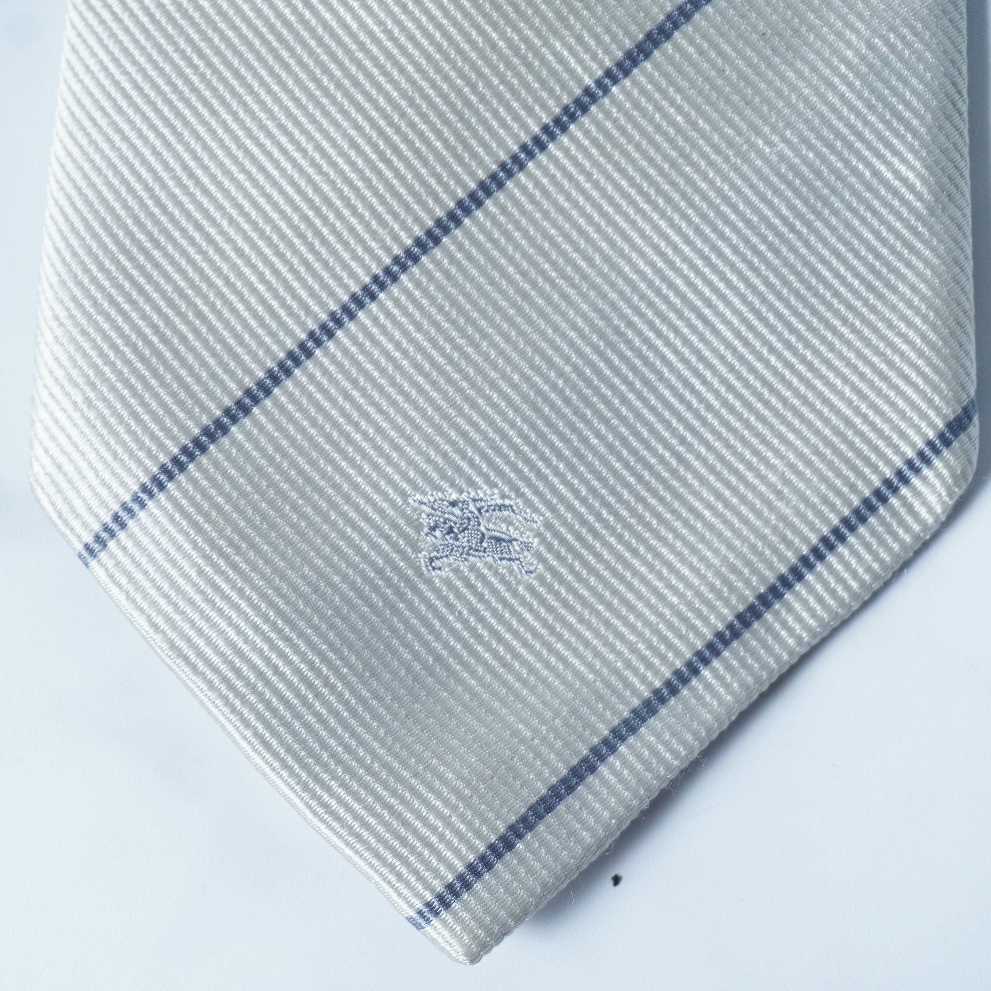 【BURBERRY】バーバリー シルク100% ホースロゴ刺繍レジメンタルネクタイ white