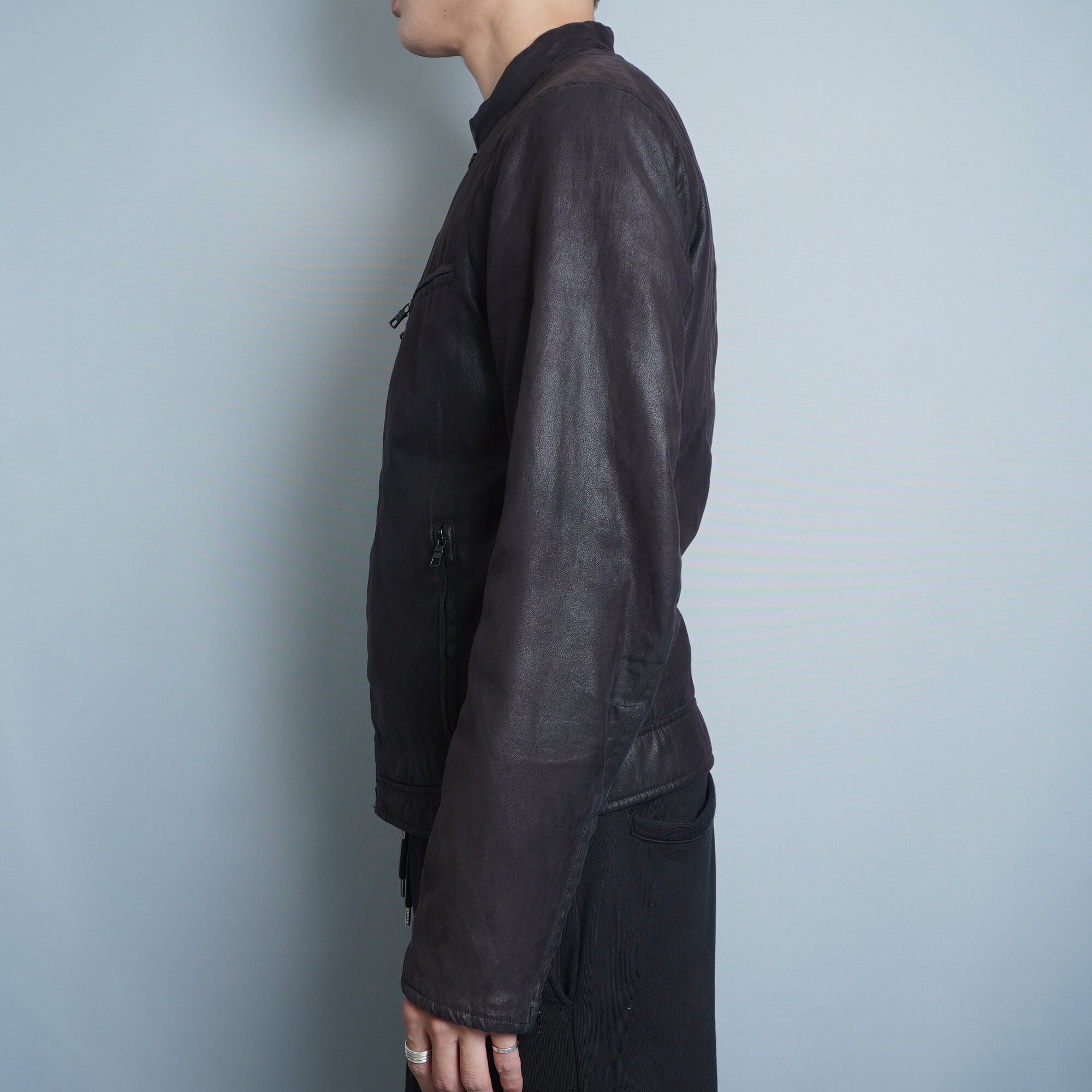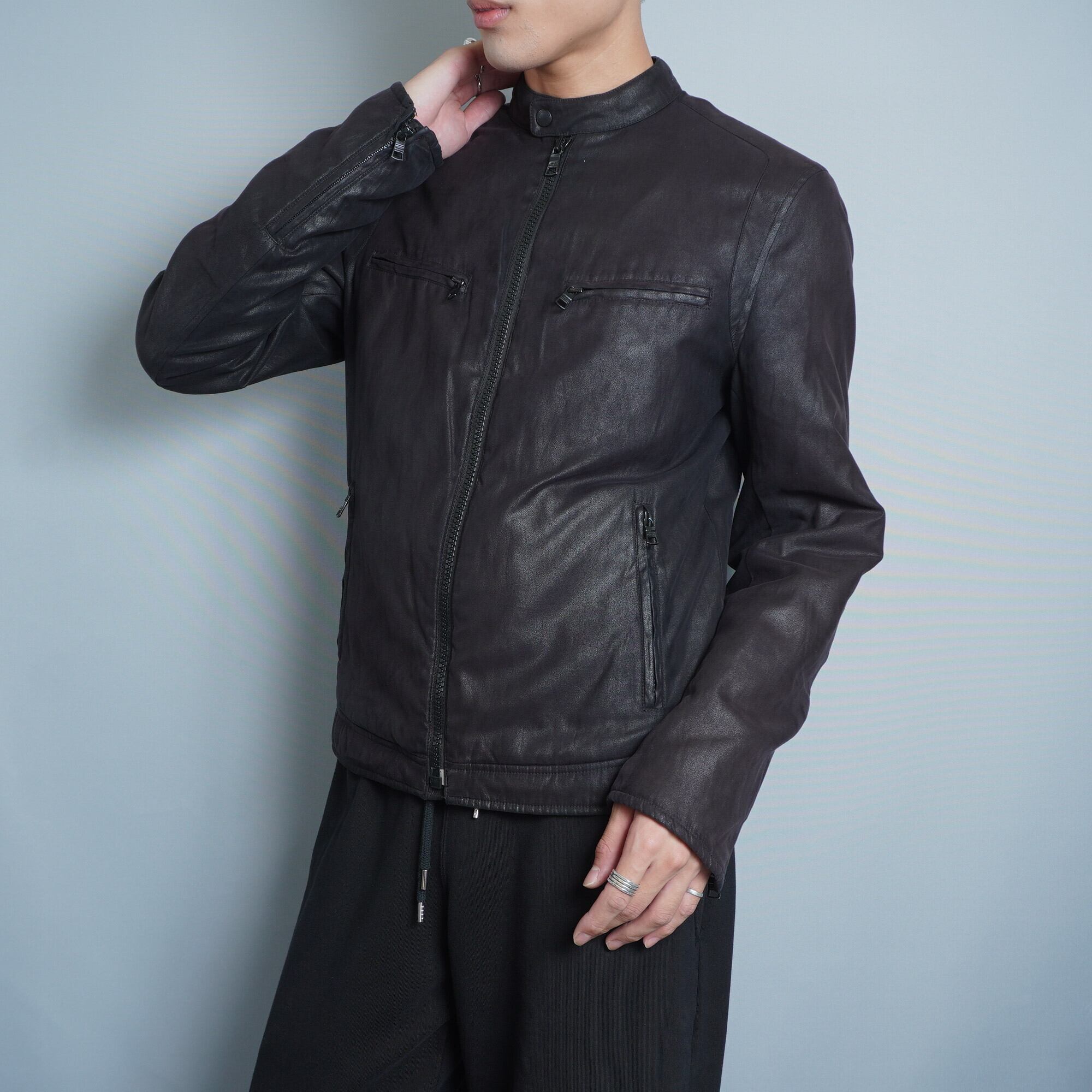 【ARMANI】ARMANI EXCHANGE 美光沢ポリジップアップバファージャケット black