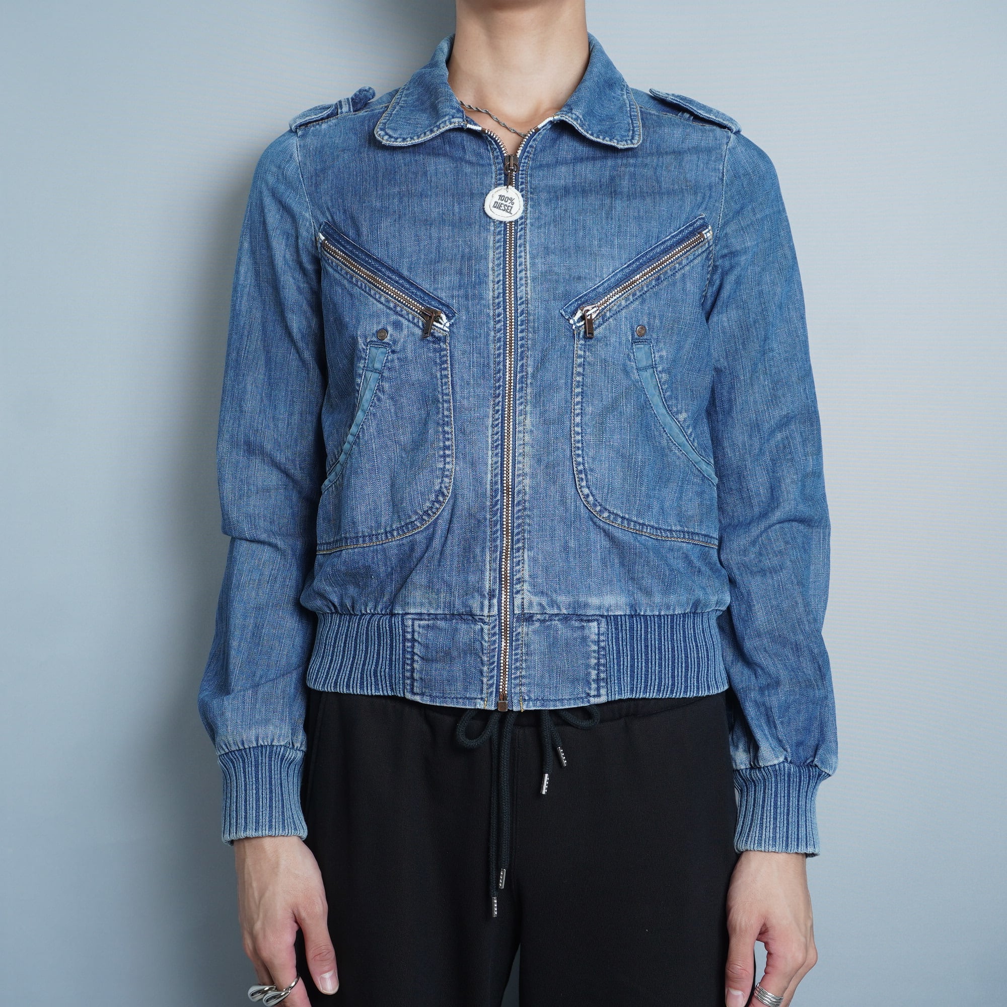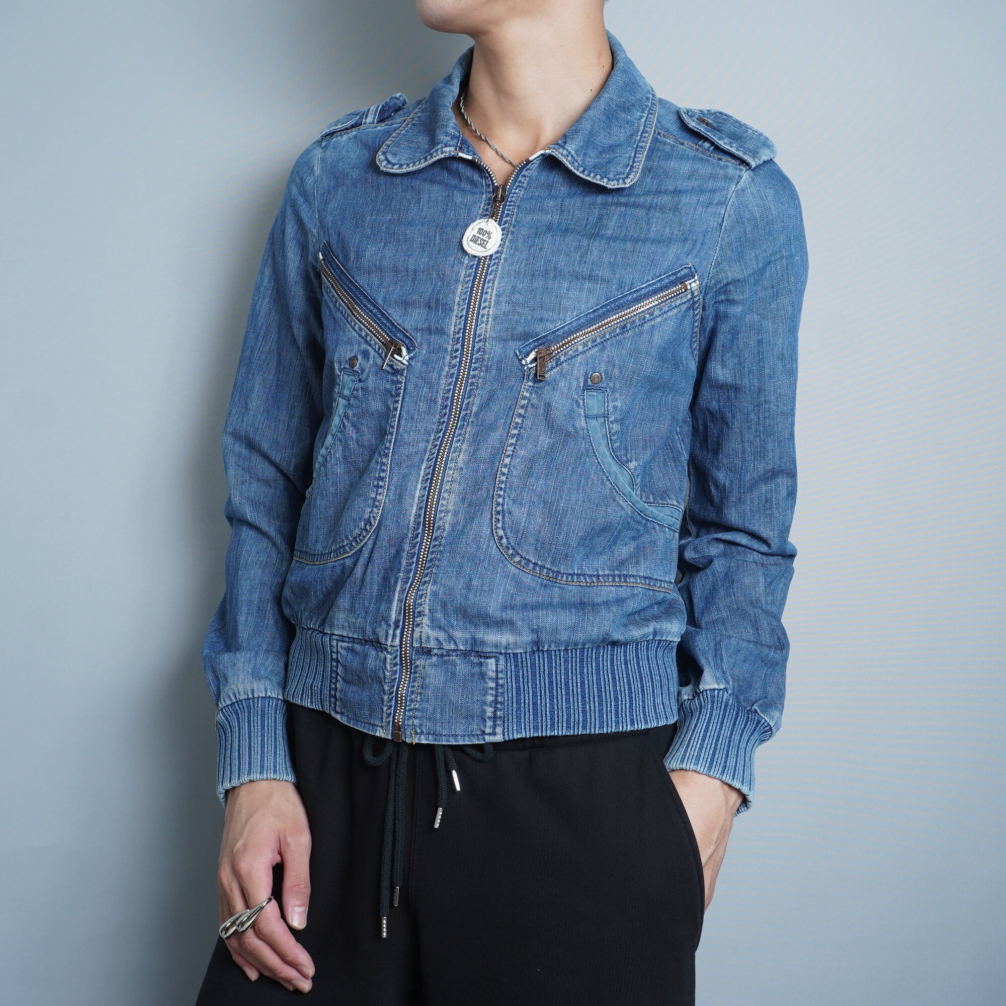 【DIESEL】ディーゼル Y2K バックプリントギミックデニムジップアップブルゾン indigo