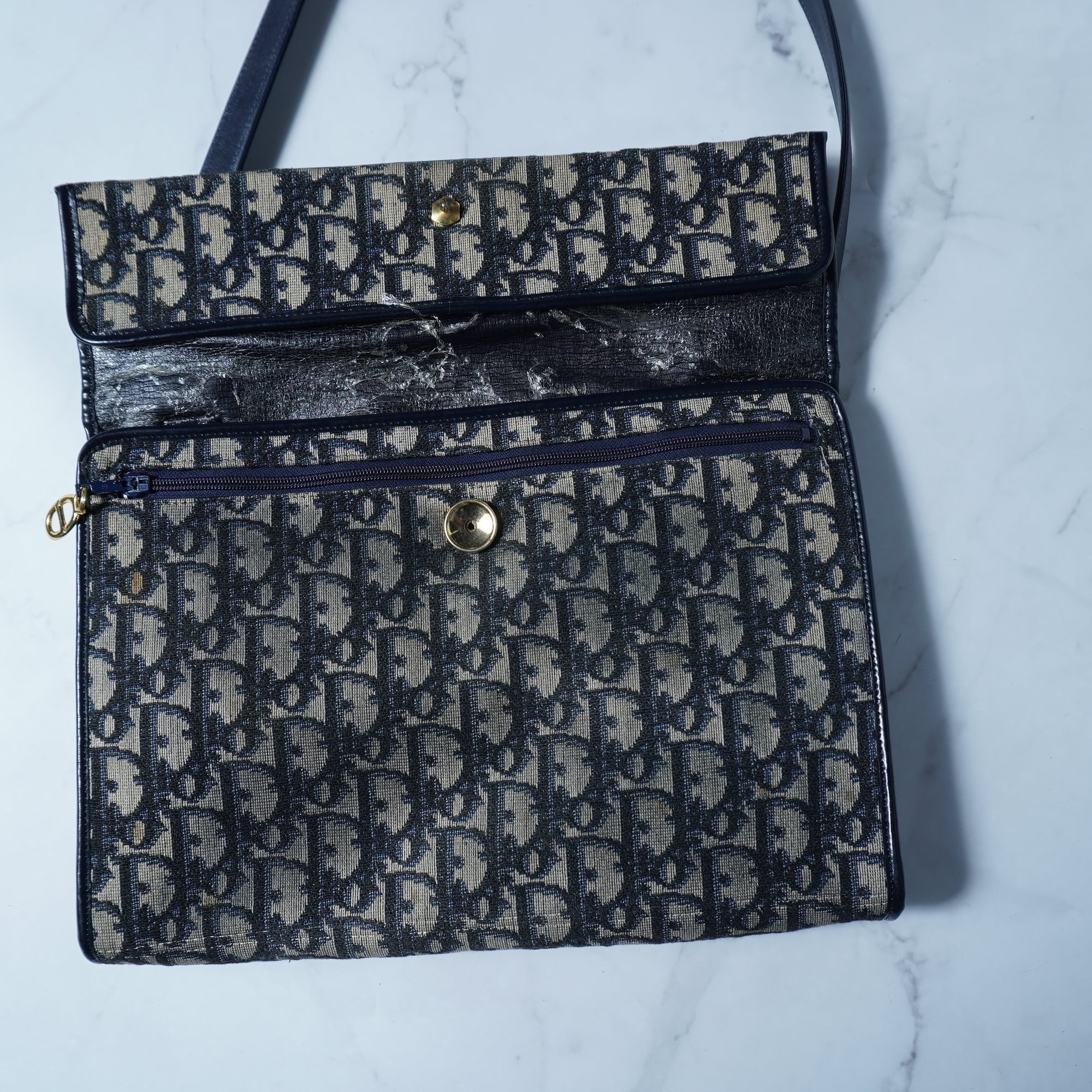 【Christian Dior】クリスチャンディオール トロッター総柄ショルダーバッグ navy & black & beige