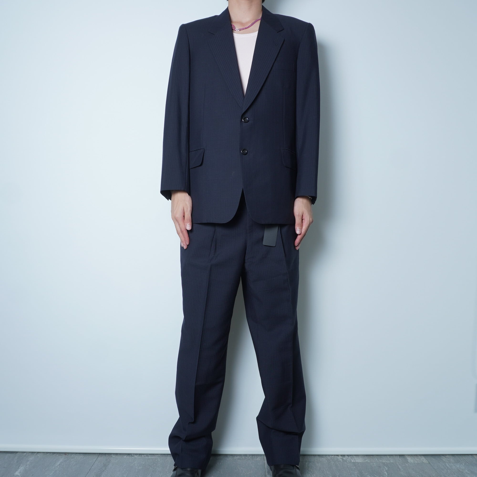 【Yves Saint Laurent】イブサンローラン WOOL100%シャドーストライプシングル2Bセットアップスーツ dark navy