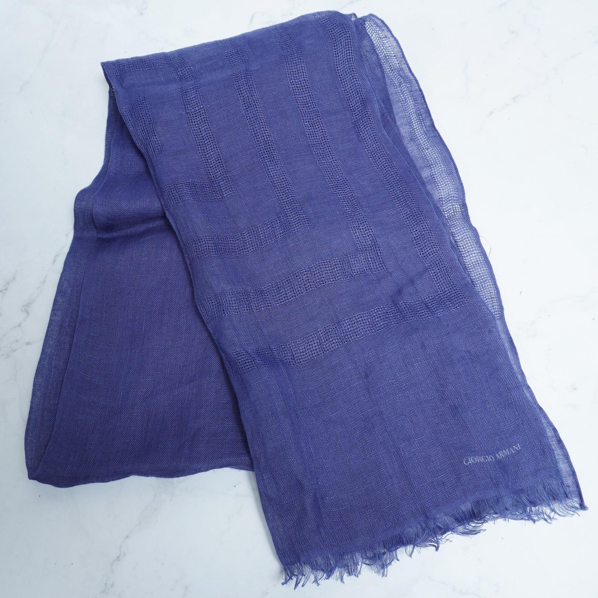 【GIORGIO ARMANI】ジョルジオアルマーニ リネン100% 薄手ストール blue
