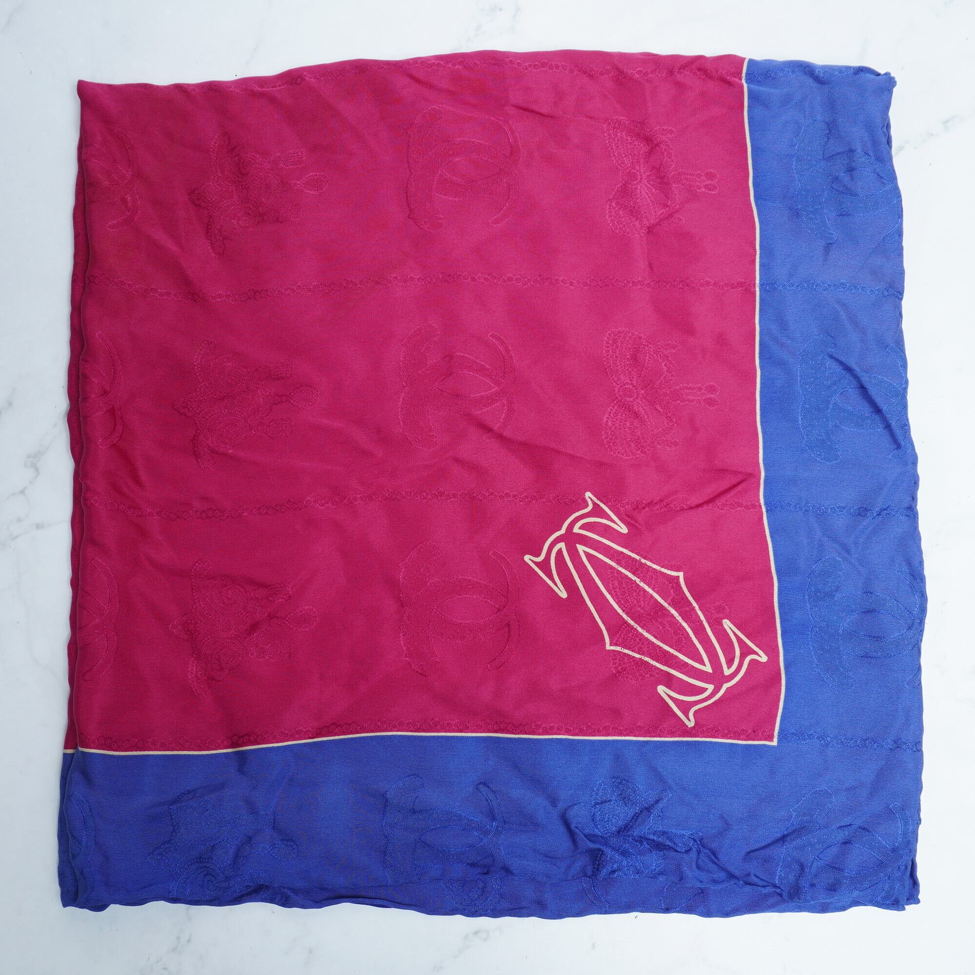 【Cartier】カルティエ バイカラーシルクスカーフ blue pink