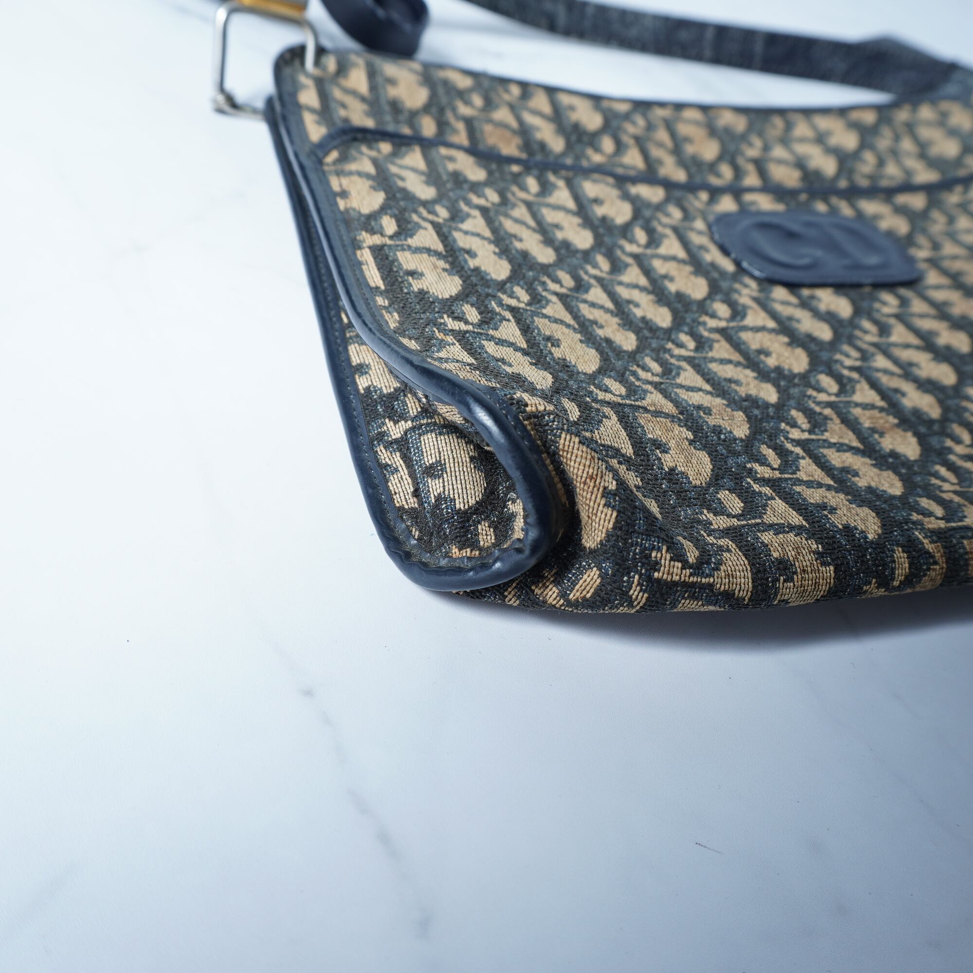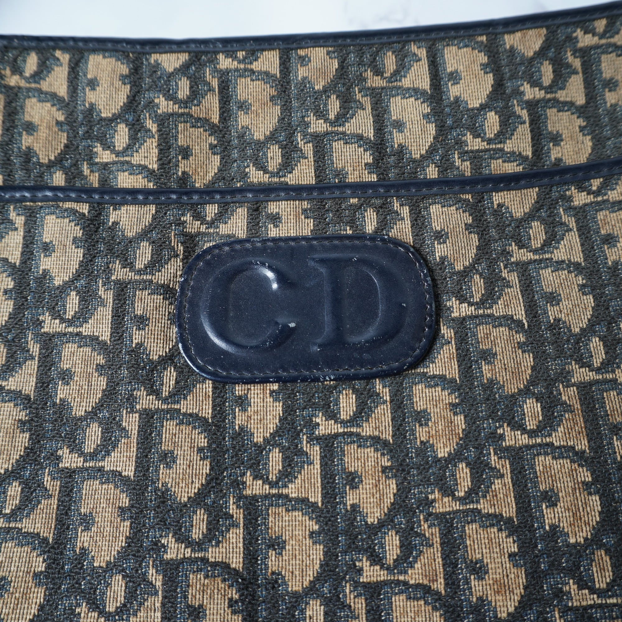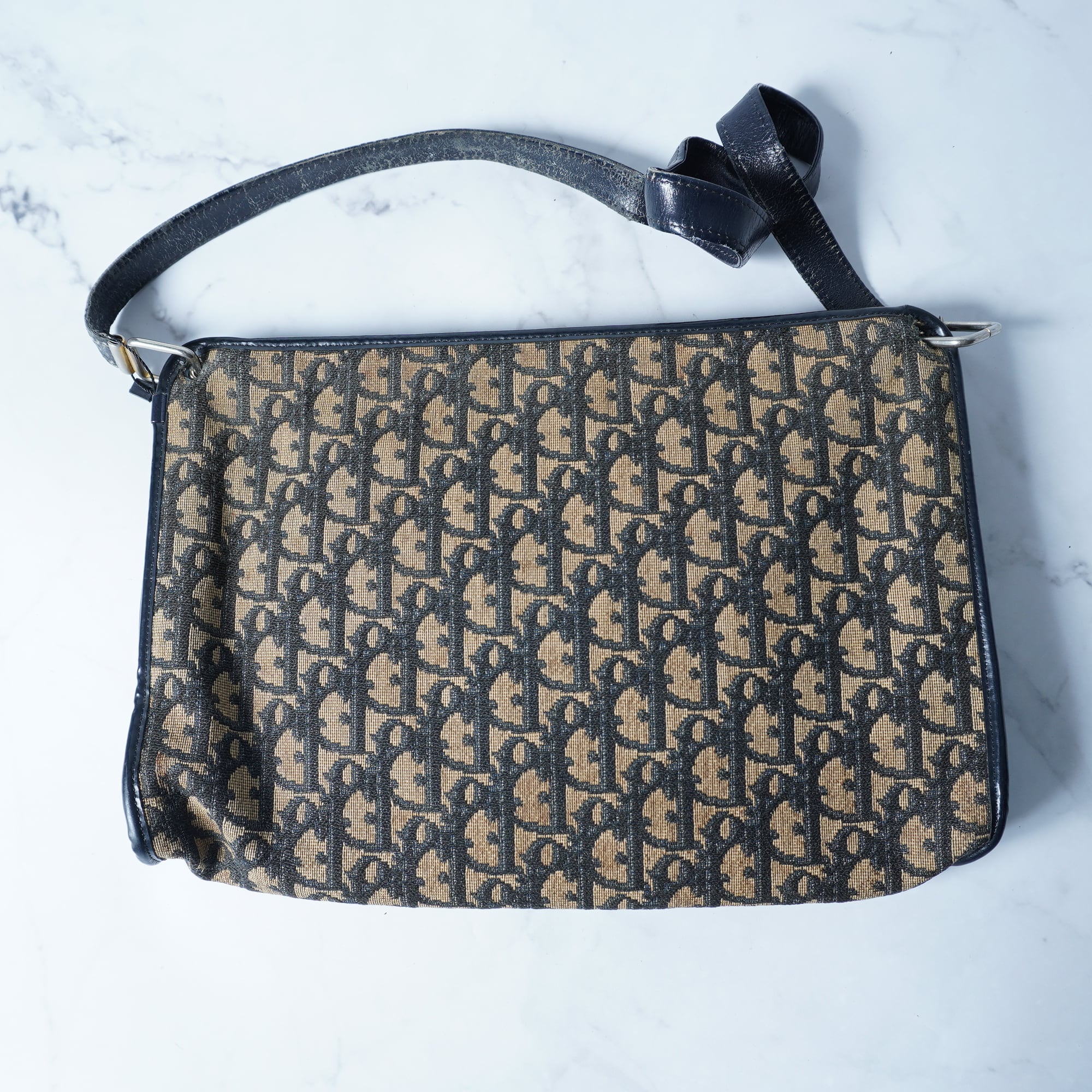 【Christian Dior】クリスチャンディオール ”CDロゴ”トロッター総柄レザー切り替えショルダーバッグ black&beige