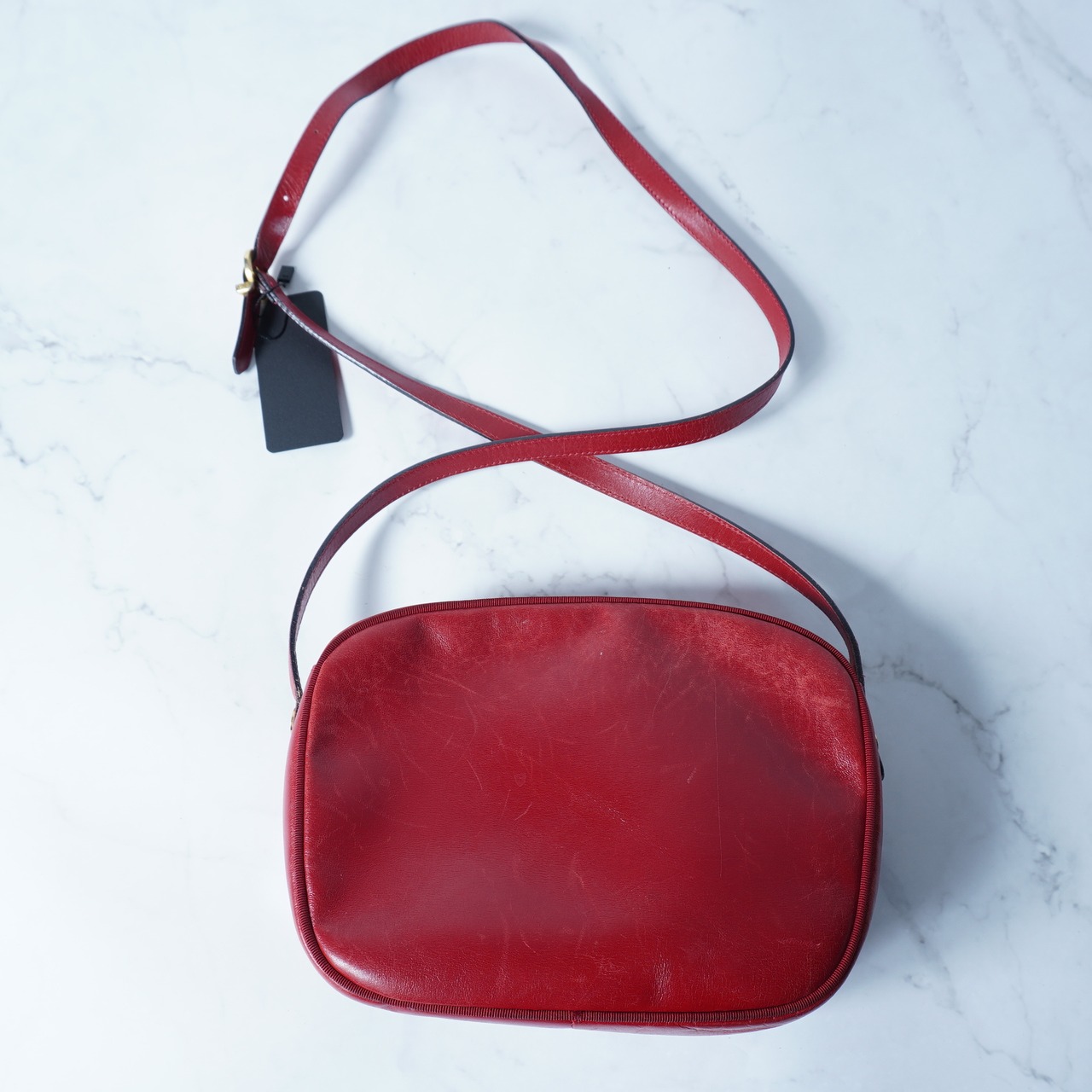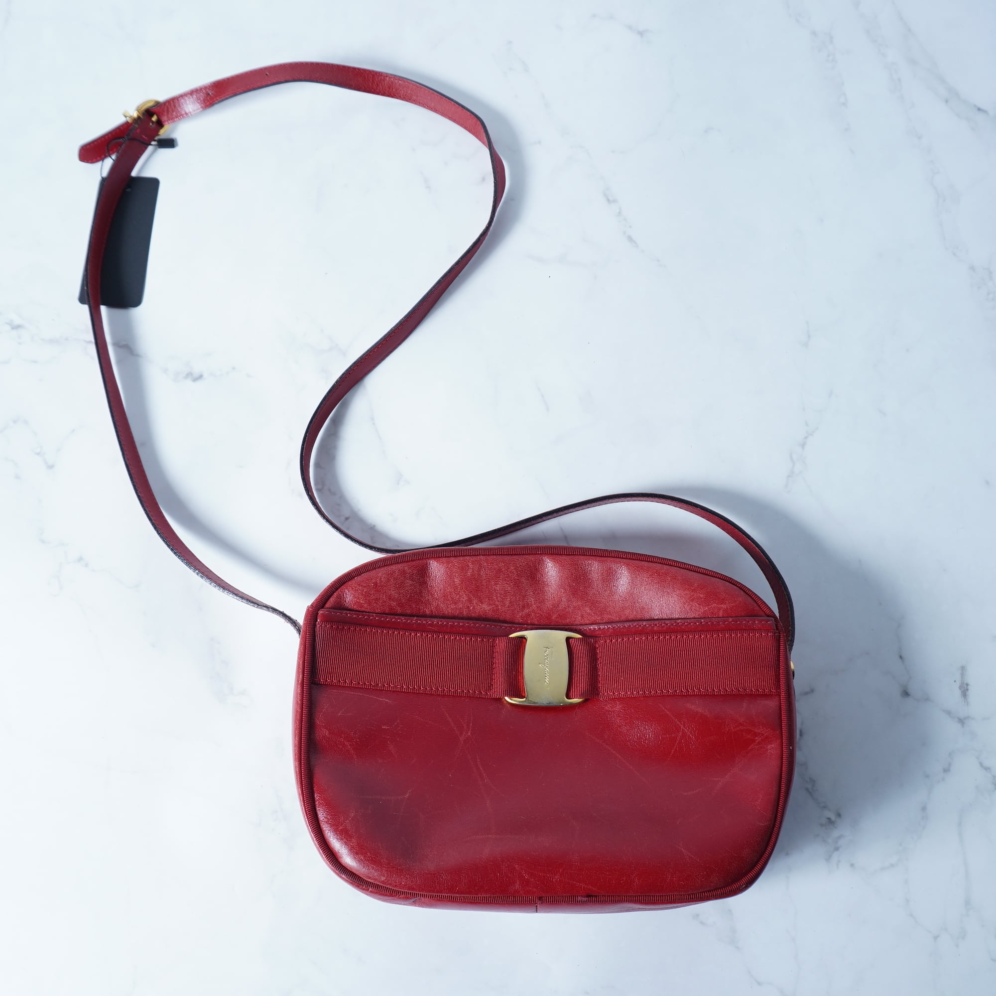 【Ferrgamo】フェラガモ”ロゴ入”リボンレザーショルダーバッグ red