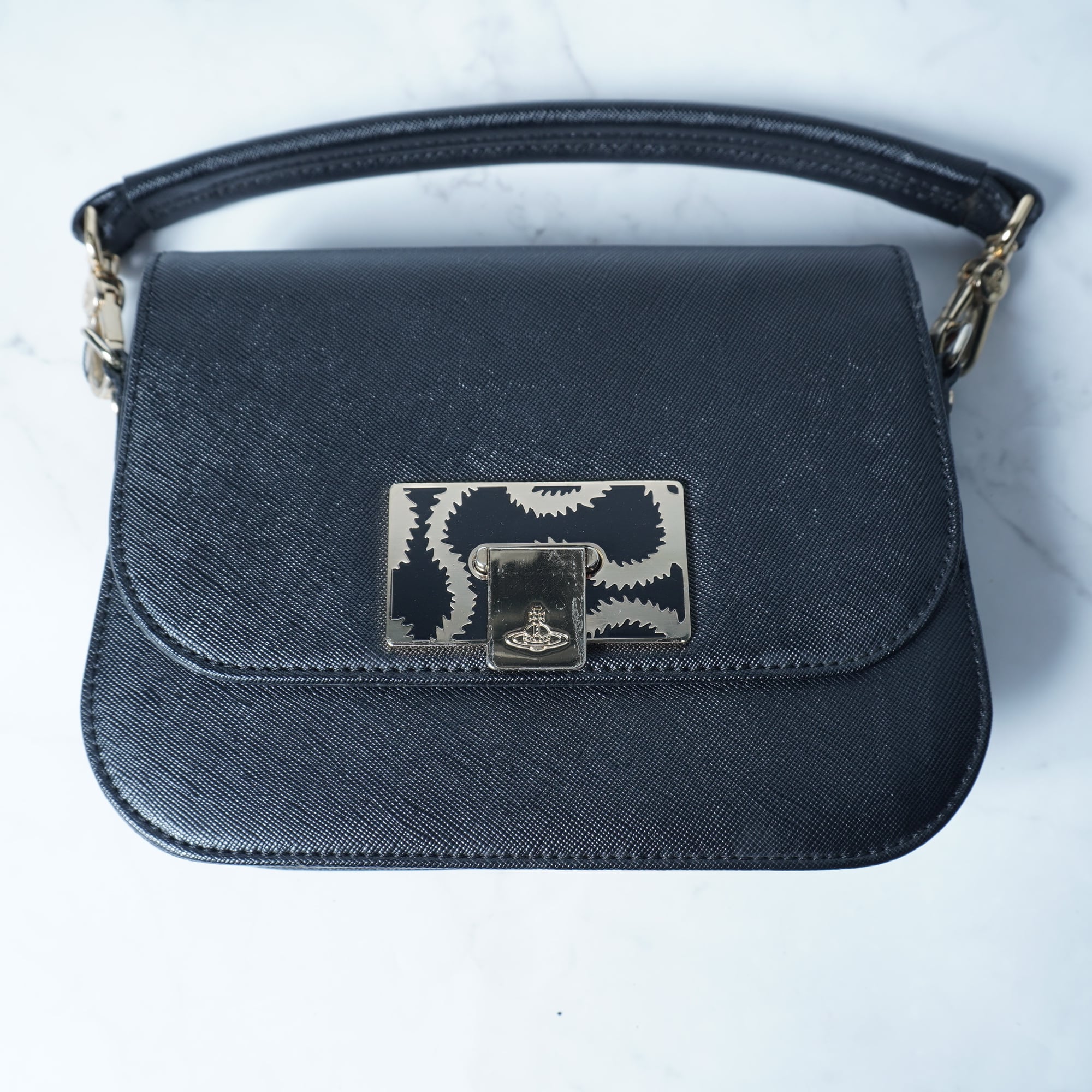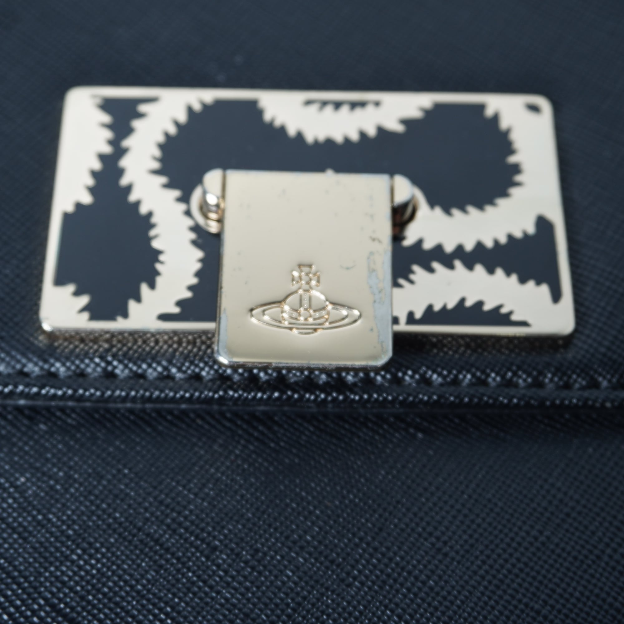 【Vivienne Westwood】ヴィヴィアンウエストウッド ”オープンロゴ刺繡”サフィアーノレザーハンドバッグ black