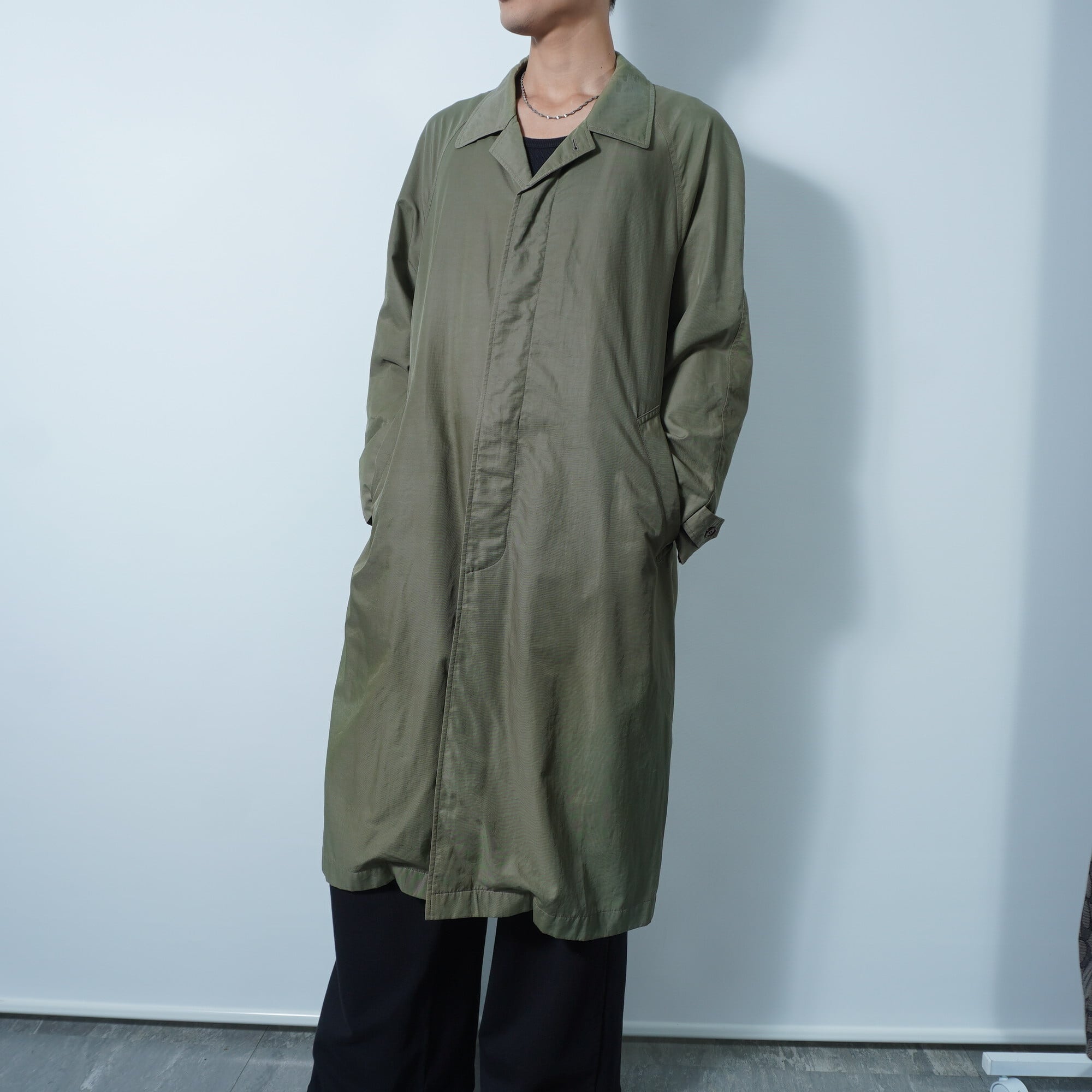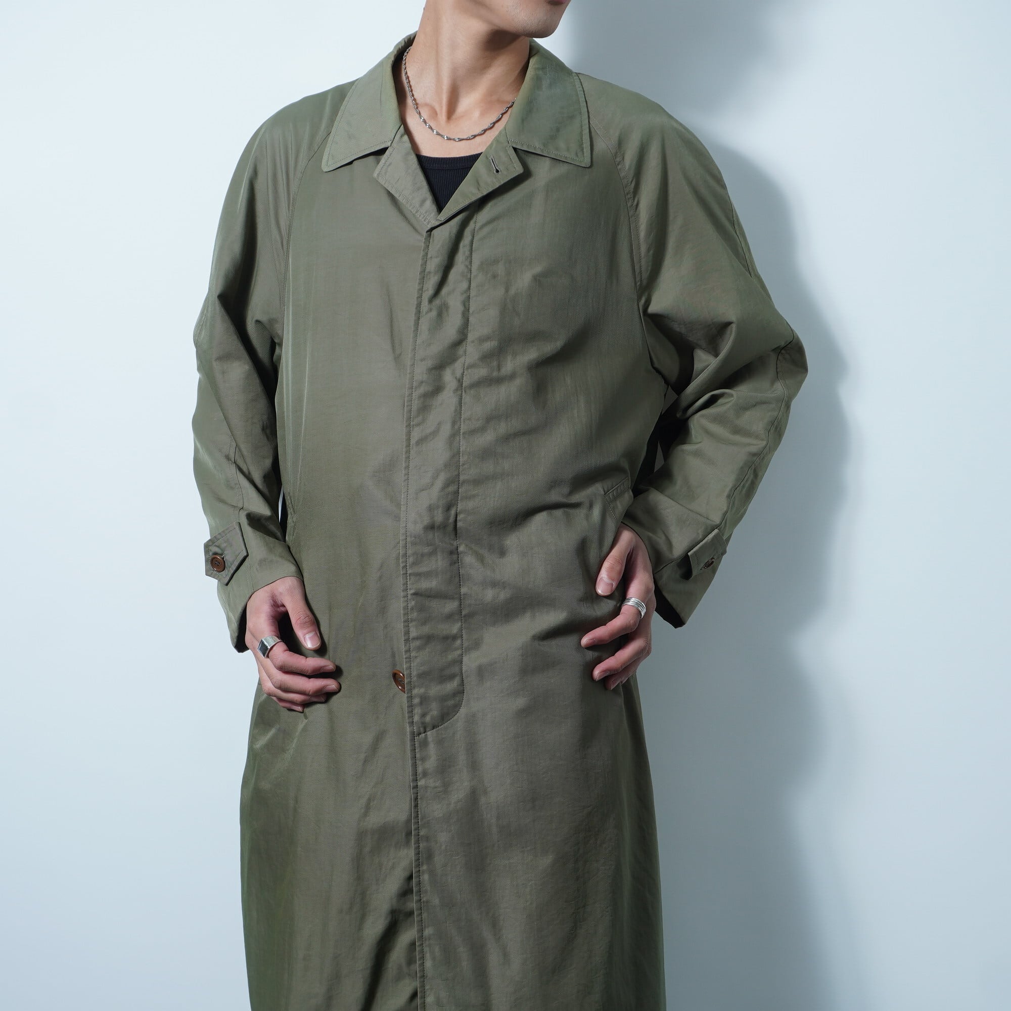 【Christian Dior】クリスチャンディオール 90's vintage ナイロン混コットン 美光沢ステンカラーコート khaki