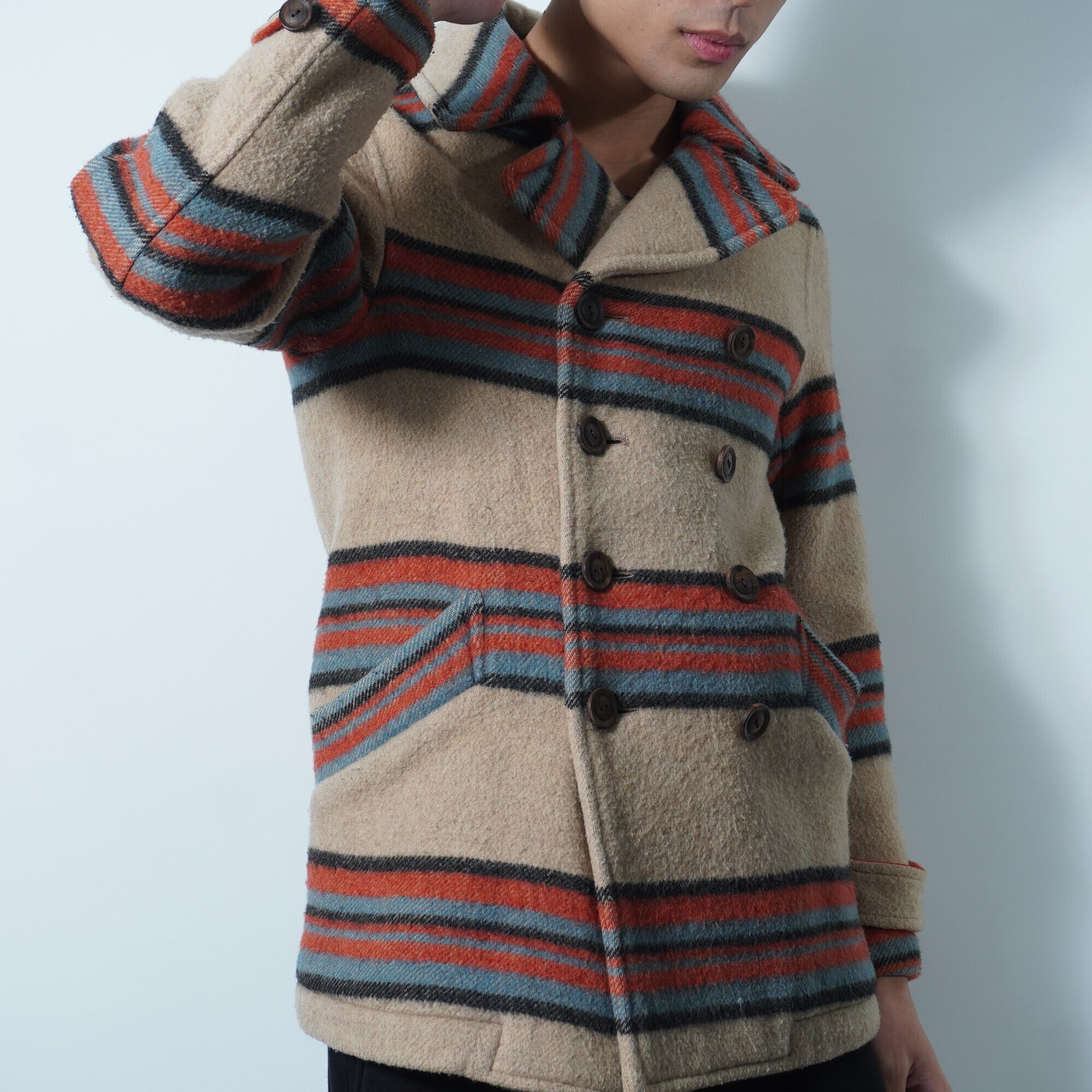【HYSTERIC GLAMOUR】ヒステリックグラマー vintage ウール100%ボーダーパターンダブルコート beige