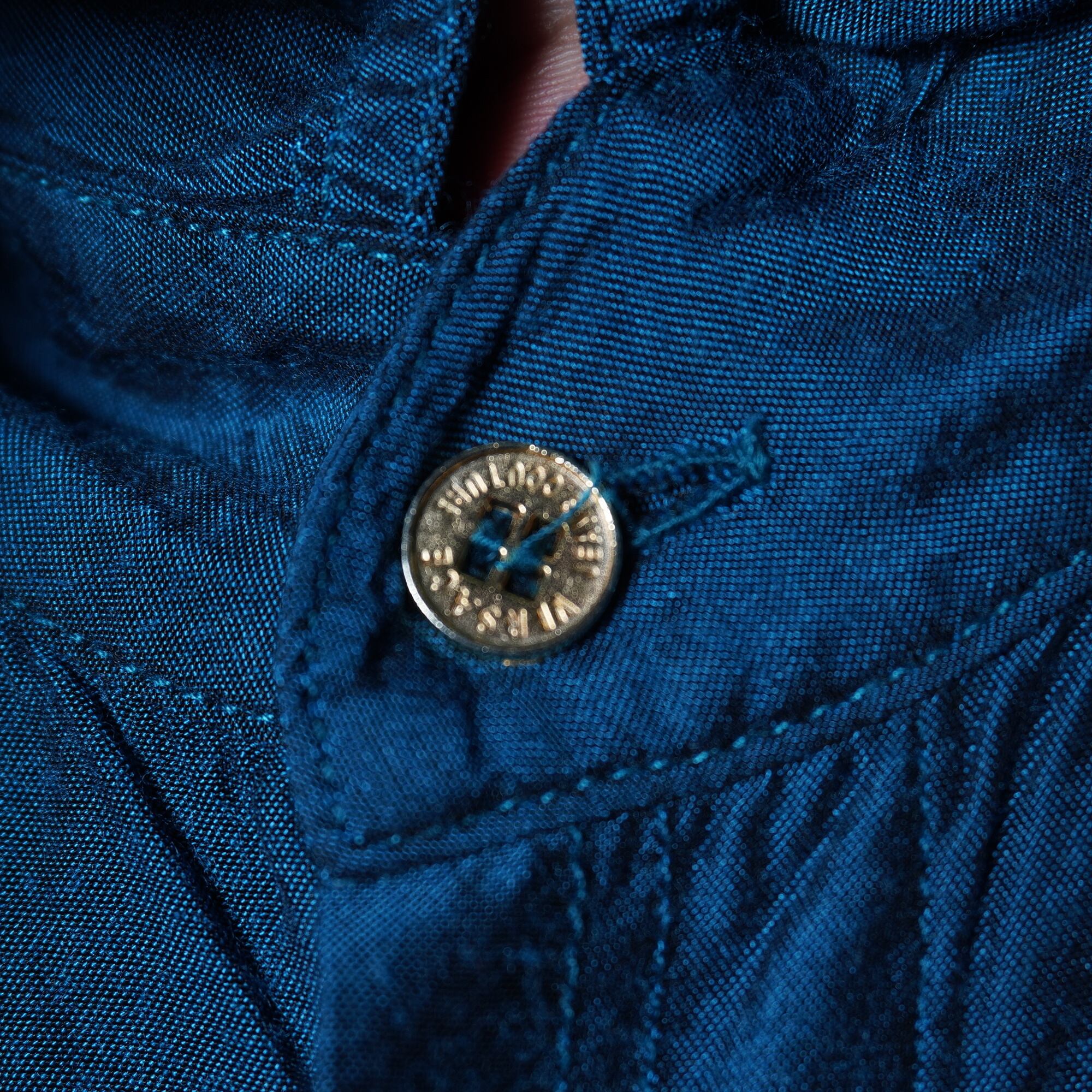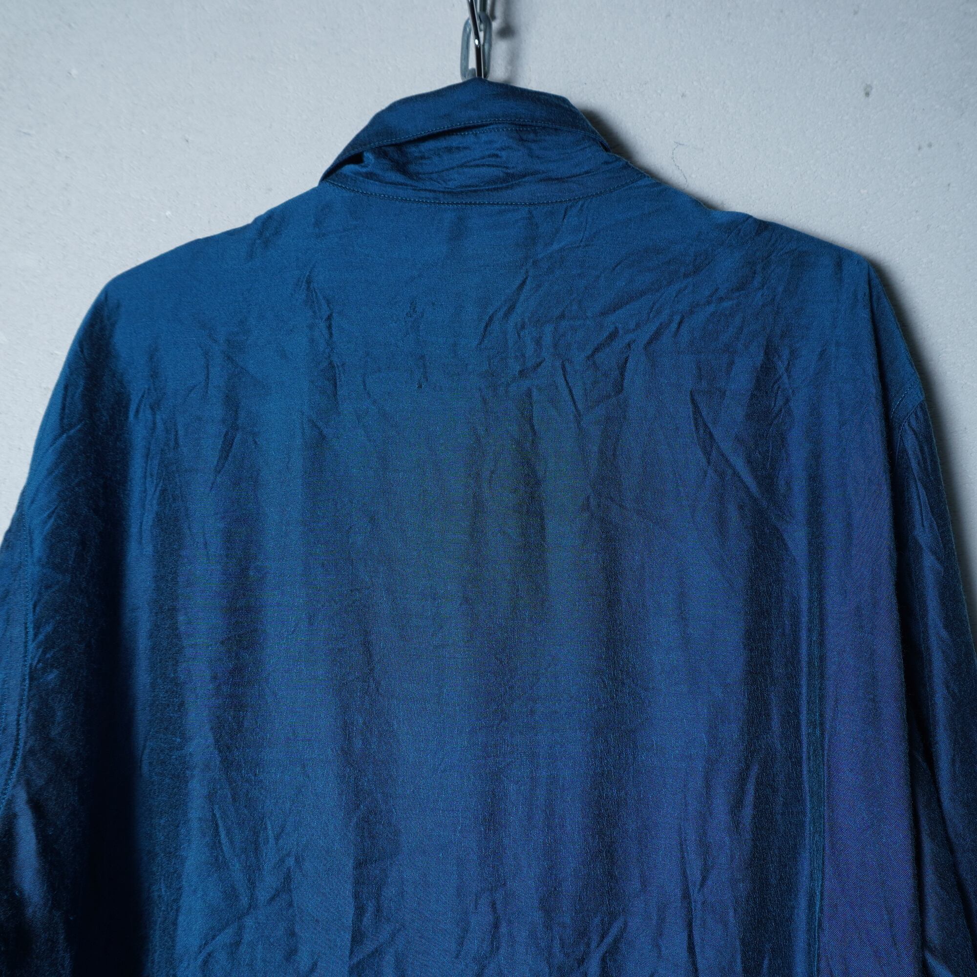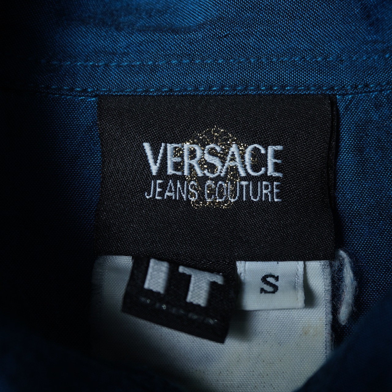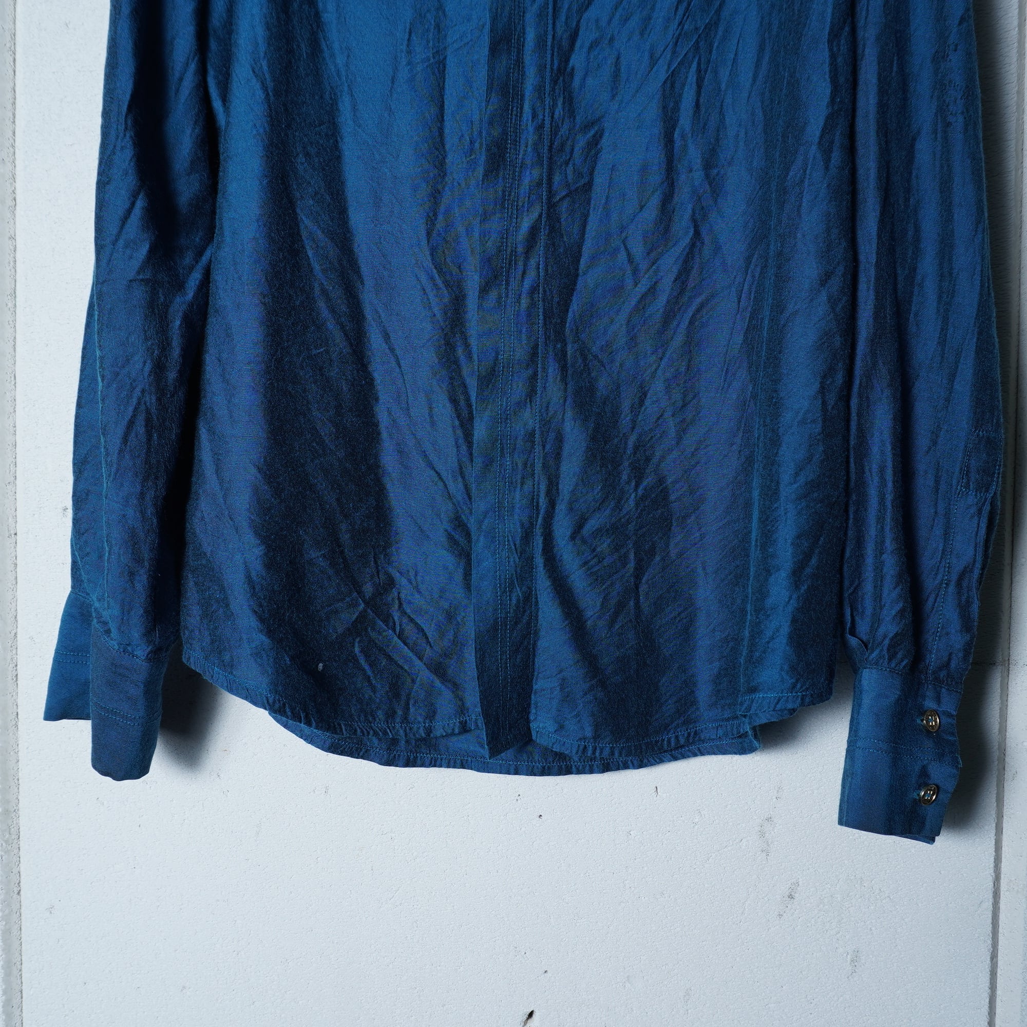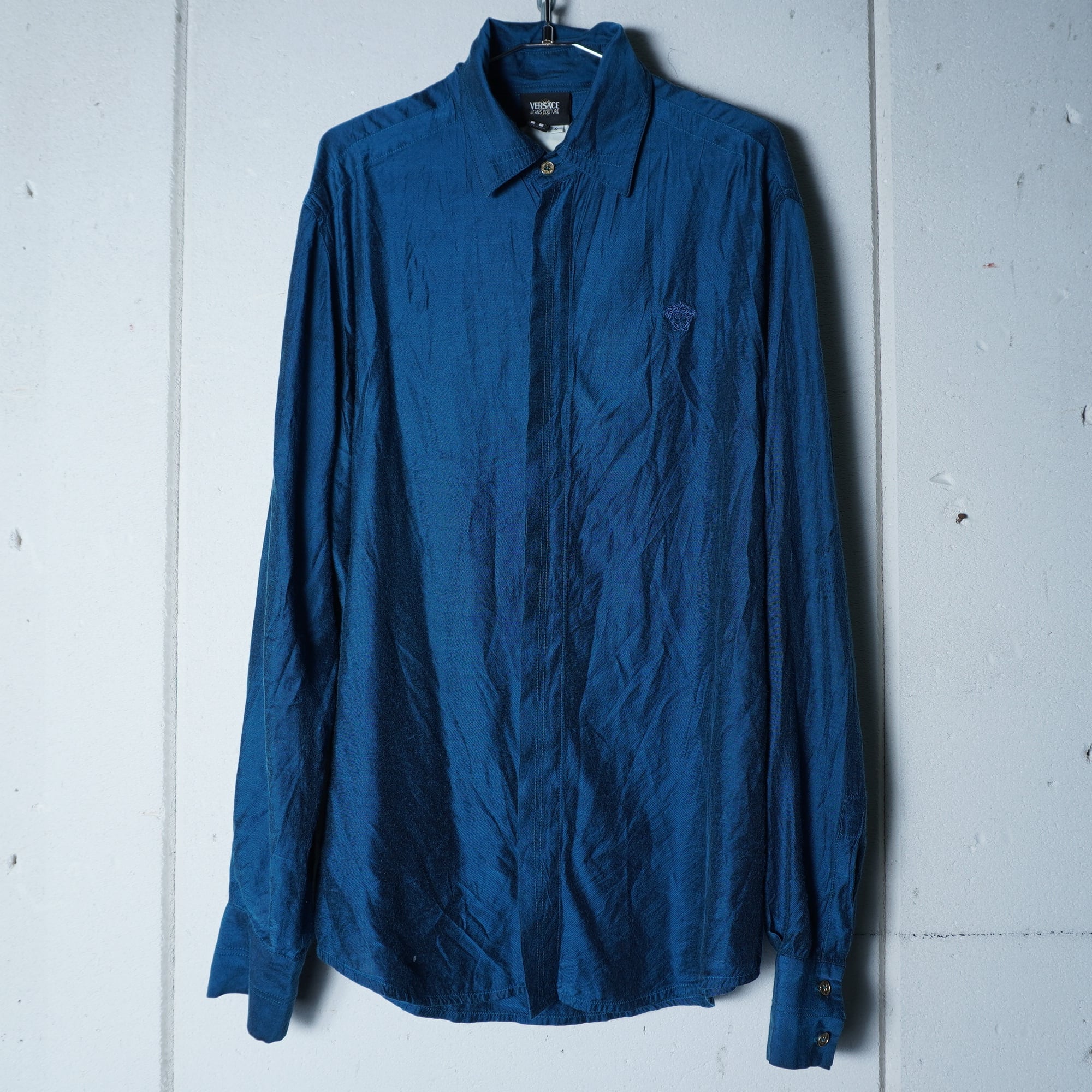【VERSACE】ヴェルサーチ ”メドゥーサ刺繍” 比翼仕立ロゴボタン長袖シャツ blue navy