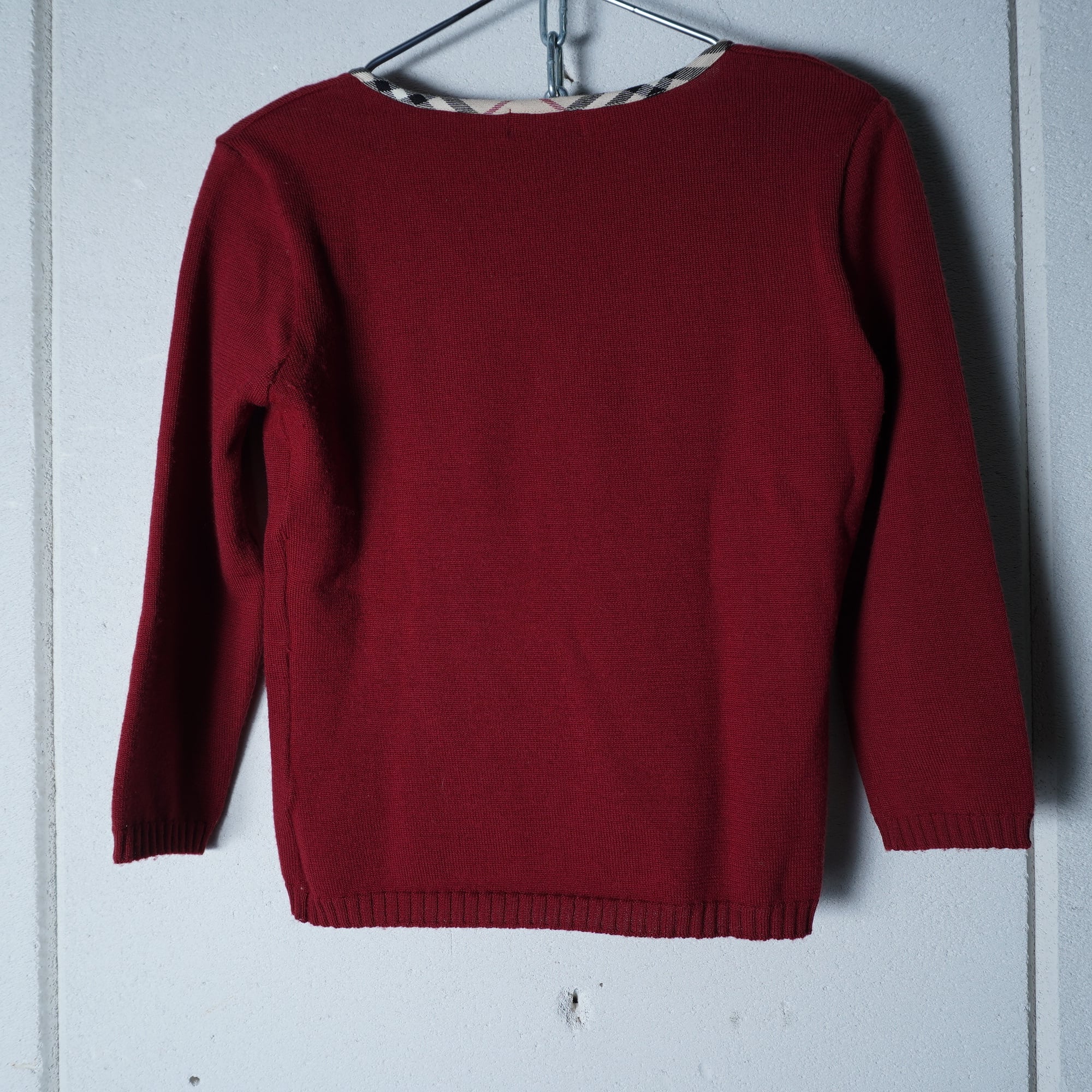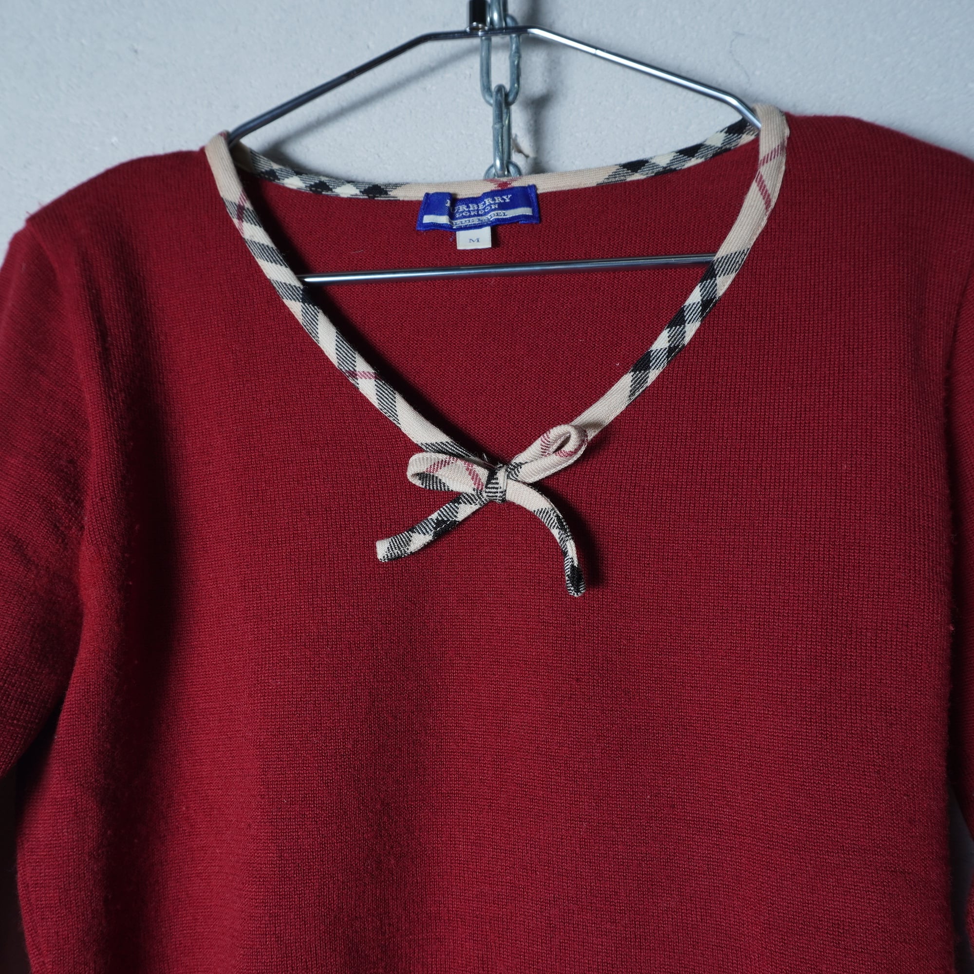 【BURBERRY】バーバリー "ノヴァチェックネック” リボンウール red