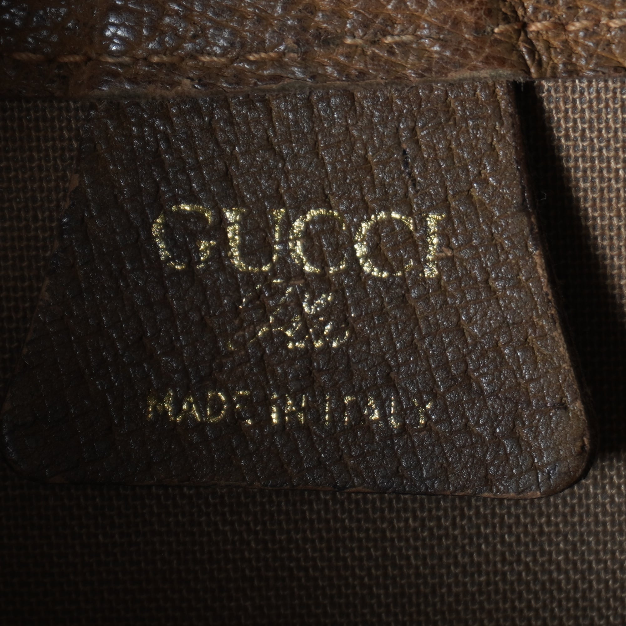 【GUCCI】グッチ ”GGロゴ総柄”シェリーラインフロントポケットレザートートバッグ beige&brown