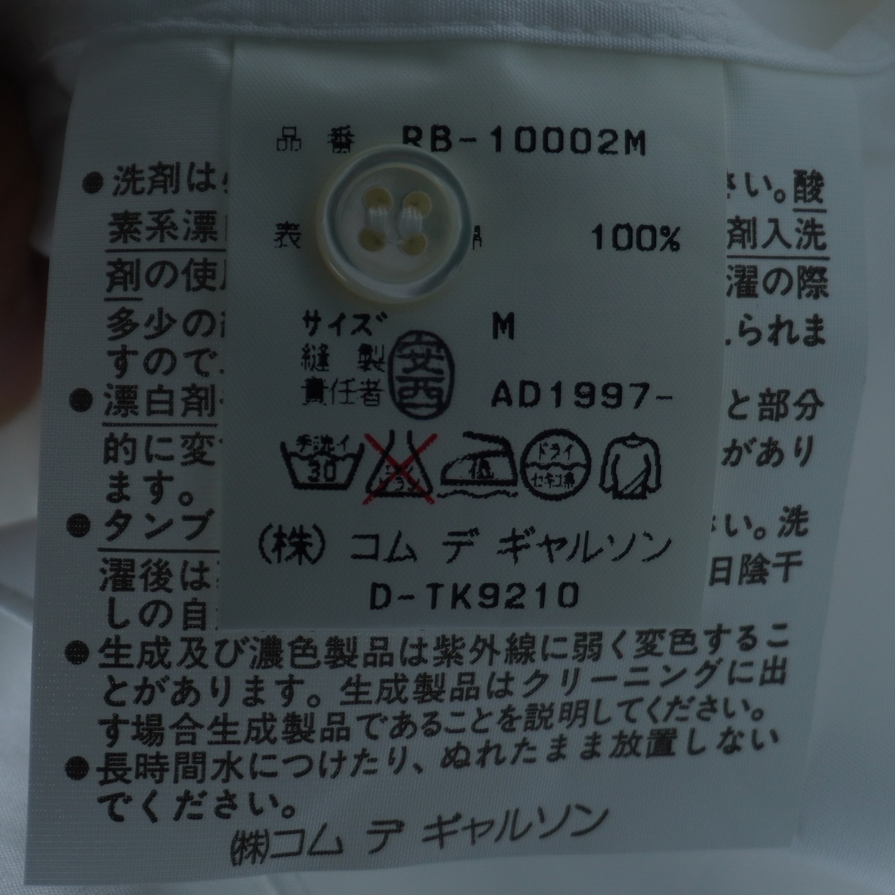 【COMME des GARCONS】コムデギャルソン "極美品”97年製 センター刺繍シャーリング丸襟長袖ブラウス white