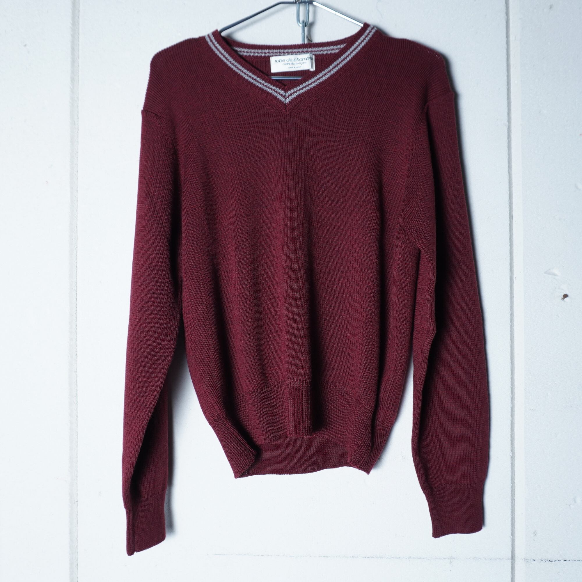 【COMME des GARÇONS】コムデギャルソン "極美品" 97年製 WOOL100% Vネックライン入ニット bordeaux&gray